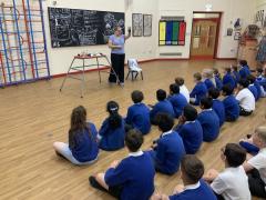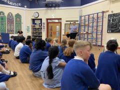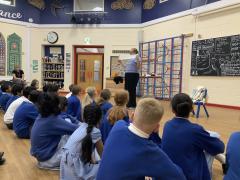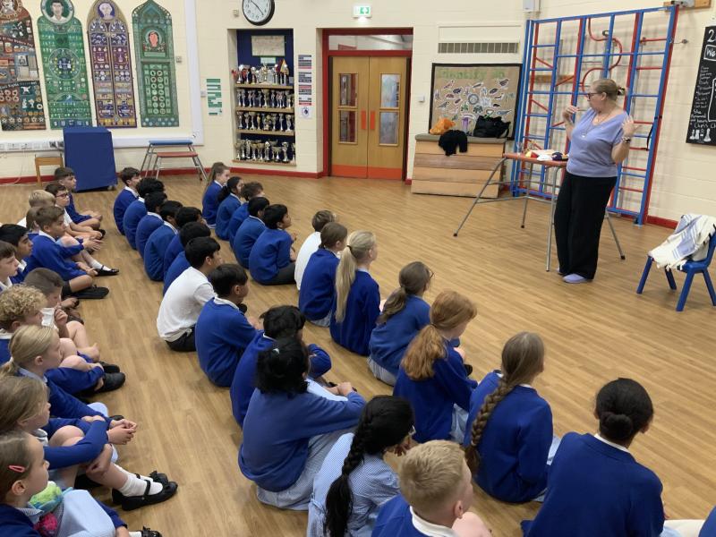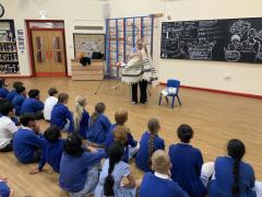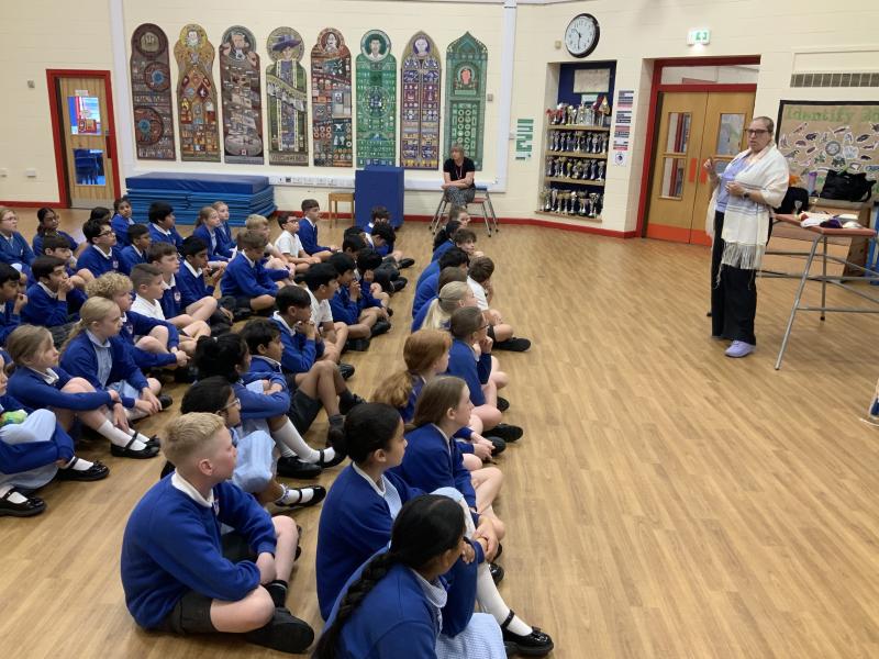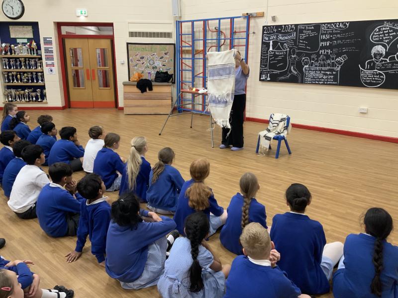 Year 5 were treated to a special visitor today who came to talk to them about the Jewish faith. Rachel spoke to the children in great depth about her faith and the things she does on a daily basis to follow her faith. The children were shown many of the items associated with the Jewish faith such as the Kippah, the prayer shawl and her copy of the Torah. These were discussed in great depth and the children showed great knowledge and understanding of the Jewish faith and asked many probing and respectful questions. It was a surprise to find out the array of different designs of the Kippah, even seeing examples including M and M's and the Simpsons along with traditional designs. A great way to enhance the children's learning.
