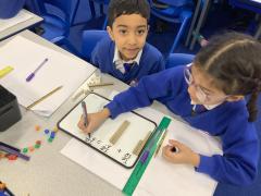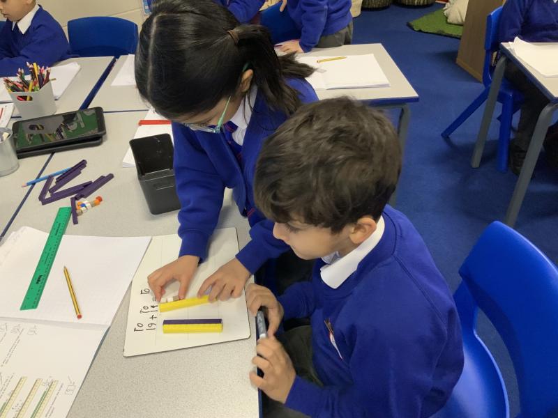 This week we have been adding and subtracting with exchange, building on our prior knowledge and securing the understanding of having to exchange 10 ones for a ten, doing this practically first and then with jottings once we are confident.