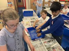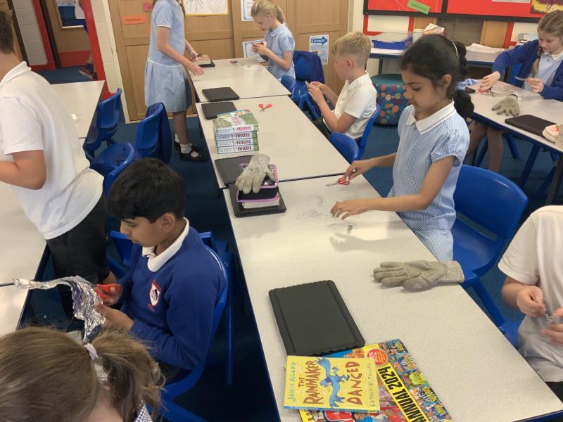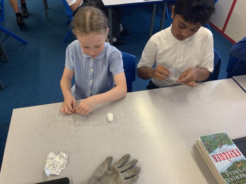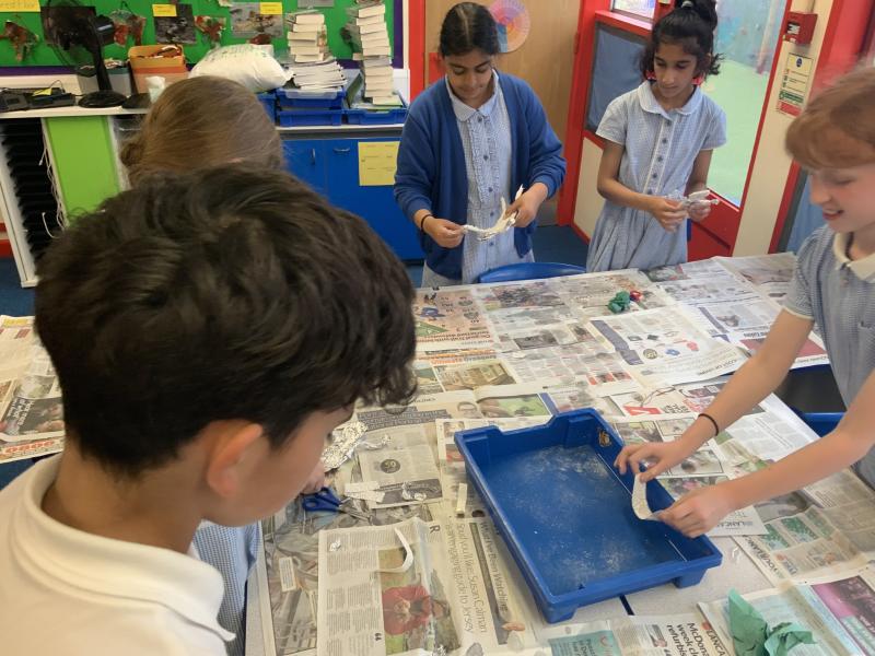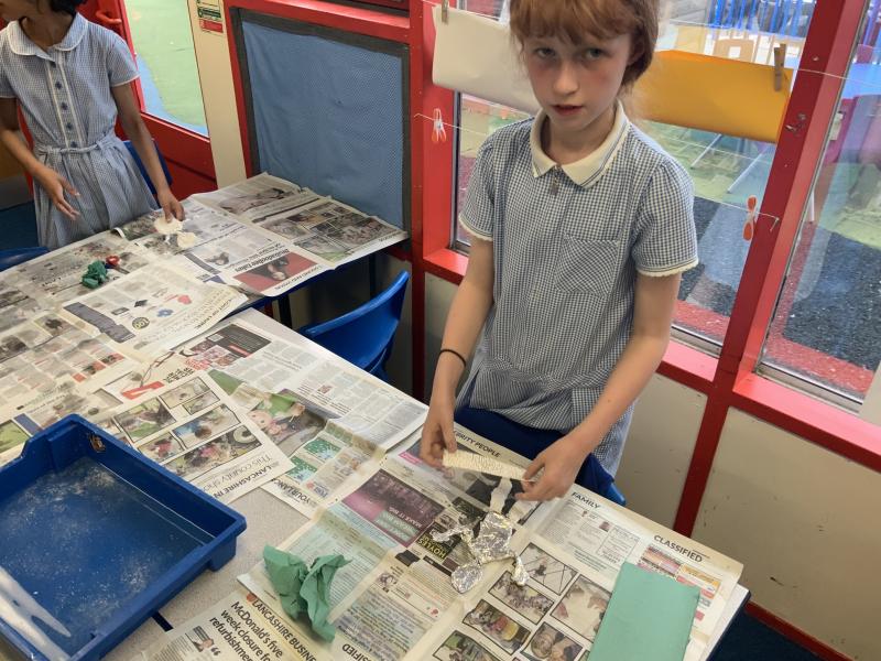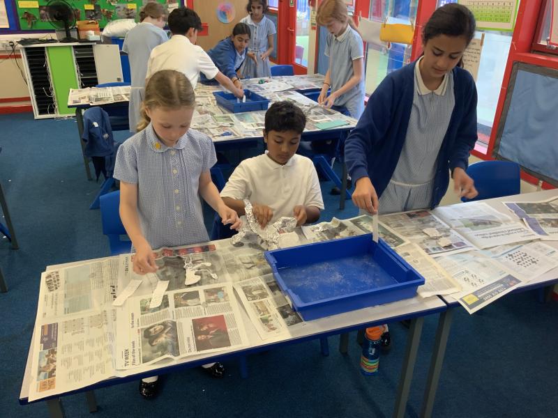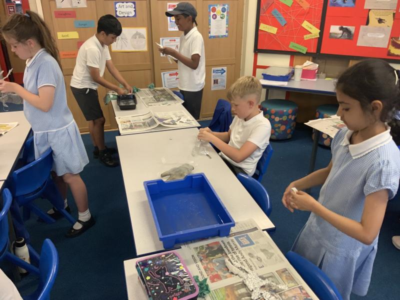 Following on from the previous lessons where the children have produced their outline sculptures, today they have added more substance to the sculptures before adding modroc to finish the sculpture. A bit of a messy afternoon but the children have enjoyed themselves and the sculptures are looking good.