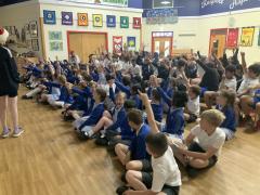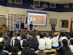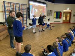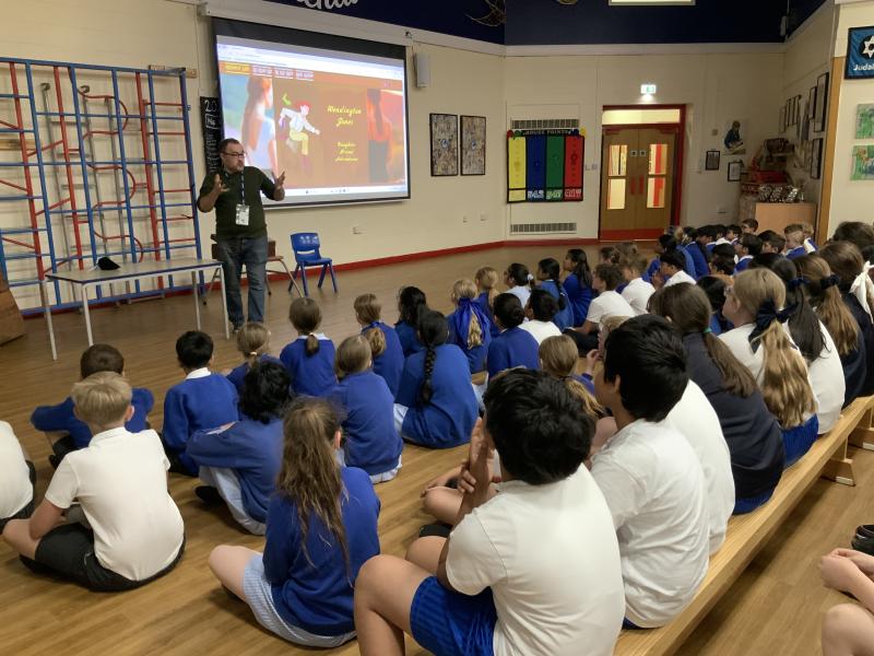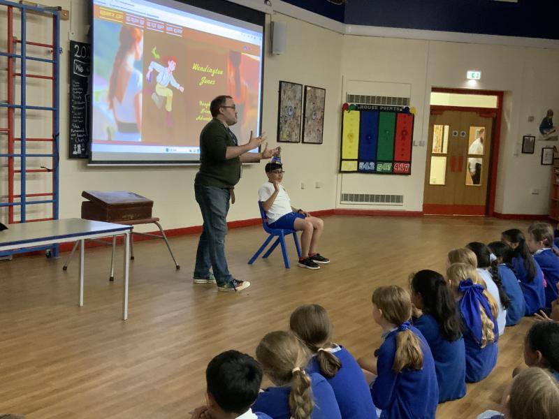 Years 5 and 6 were very fortunate this afternoon to have a visit from author Daniel Dockery. With the help of some creative volunteers, Daniel and the audience concocted an exciting adventure story, involving good and evil characters, terrifying events and crazy plot twists!
