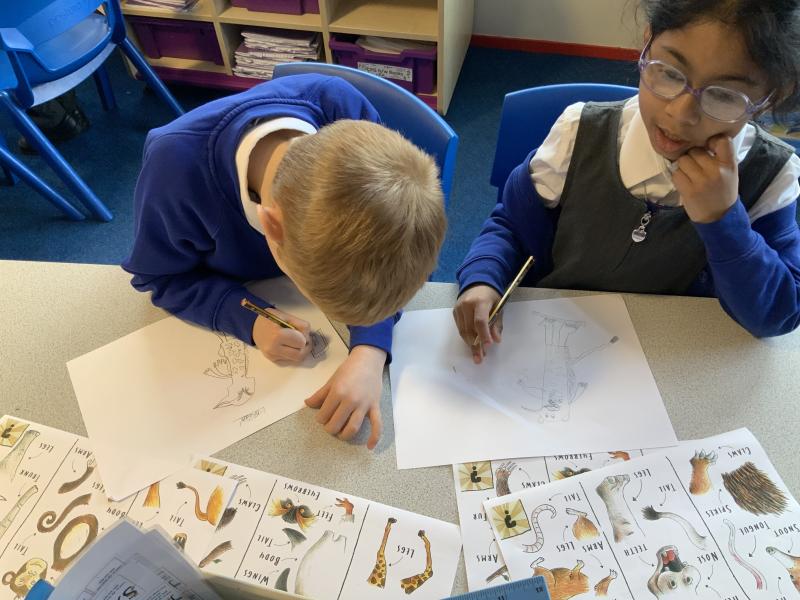 We loved having author Sean Perkins visit our classroom. He shared one of his stories about Oscar and Ben, sang us a song to get the characters to sleep. Then, he came to our classroom to share a new story he is writing. He asked us for help creating a new character for the book, so we set to work! We thought carefully about the characteristics of the new character and used this to inspire our drawings.