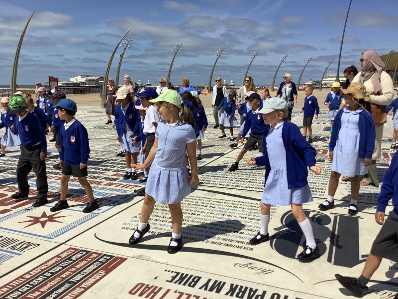 What a day! We took the tram from Starr Gate station to the Tower. We saw many landmarks along the way, including the Pleasure Beach, the Sandcastle Waterpark, Coral Island, South Peir and Central Pier. We got off the tram at Blackpool Tower and took a moment to take in the sights of Blackpool. We then went into the Tower to watch the world-famous Blackpool Circus. We couldn't believe our eyes at the fantastic acts from around the world. After that, we went into the prestigious Blackpool Ballroom to eat our lunch and watch the dancing. We even had the opportunity to dance the Hokey Cokey on the iconic ballroom floor! Back on the Comedy Carpet, we learnt how to do the Charleston dance- a famous dance from the 1920s. Finally, we studied our maps to check which landmarks we had spotted on our trip to Blackpool.