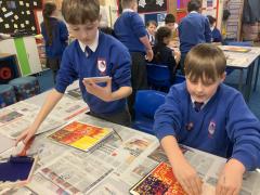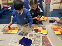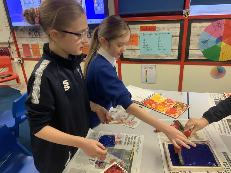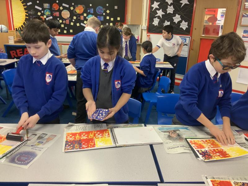 In Year 5 this week, we have added the final layer to our reduction block prints, using press print.