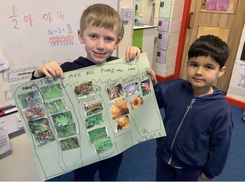 Year 2 have enjoyed classifying and grouping plants today. They designed posters and discussed each plant’s characteristics to sort them into groups - mosses, ferns, algae, flowering plants and conifers. We talked about habitat, if they had seeds and flowers or not, and looked at examples. The children have also been monitoring the growth of their seeds in a seed diary each week.