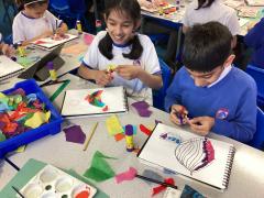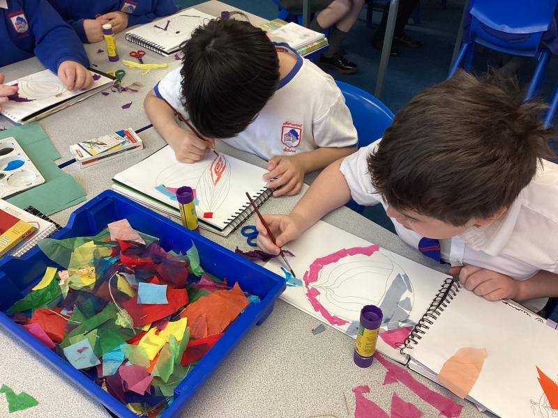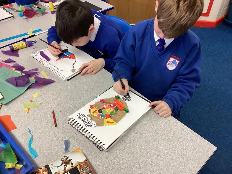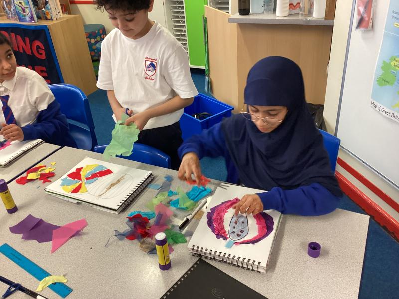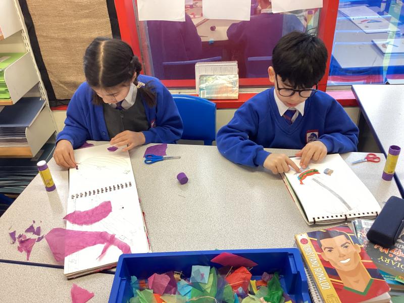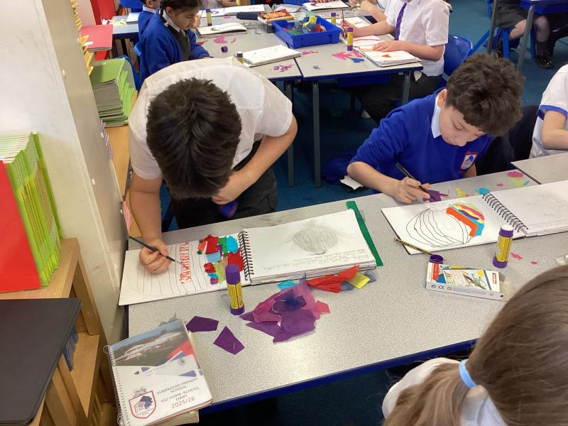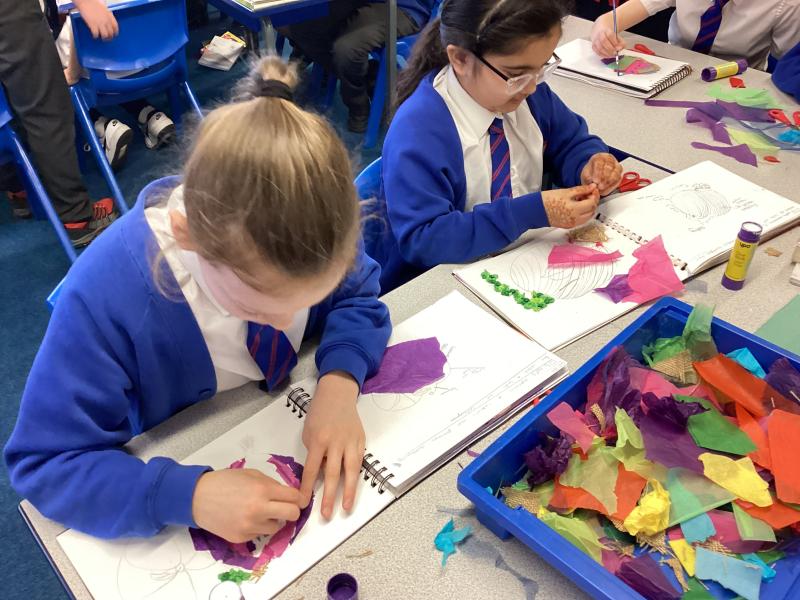 Year 5 have carefully followed their designs to begin to create their collage. They have combined visual and tactile qualities of materials and we can't wait to see the completed artwork.