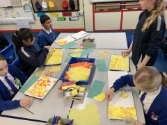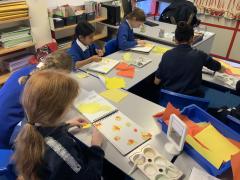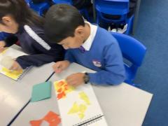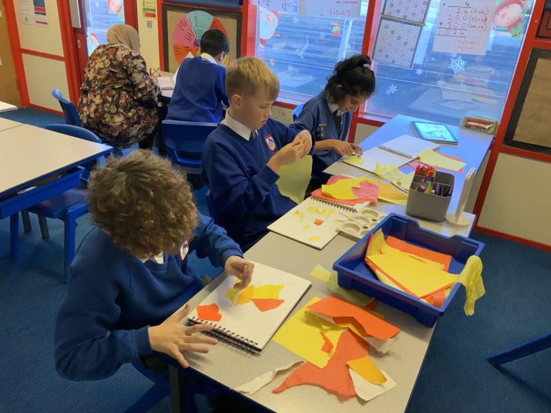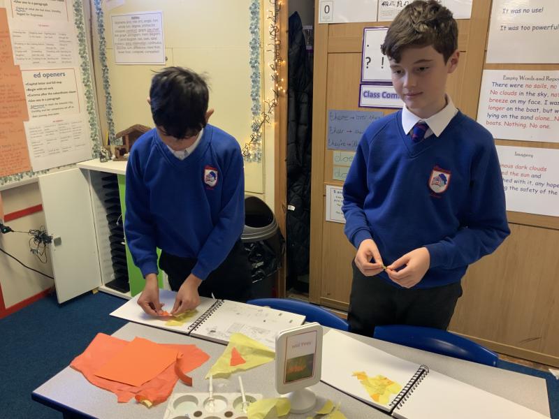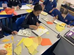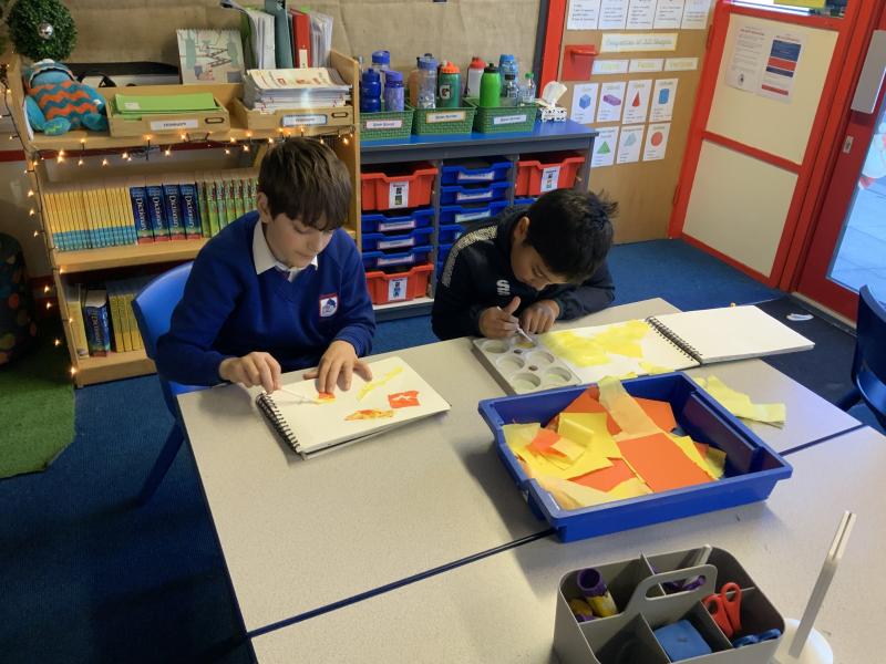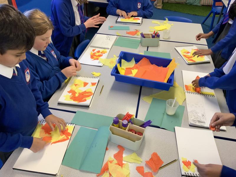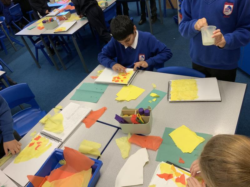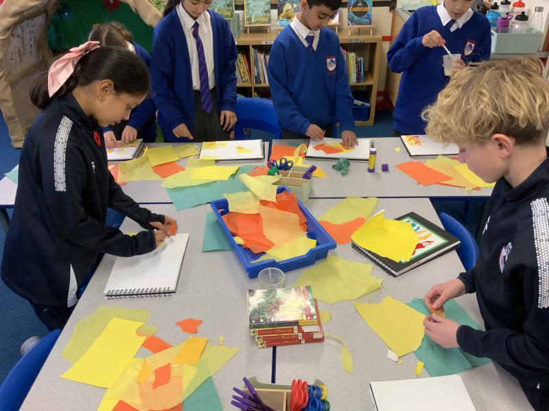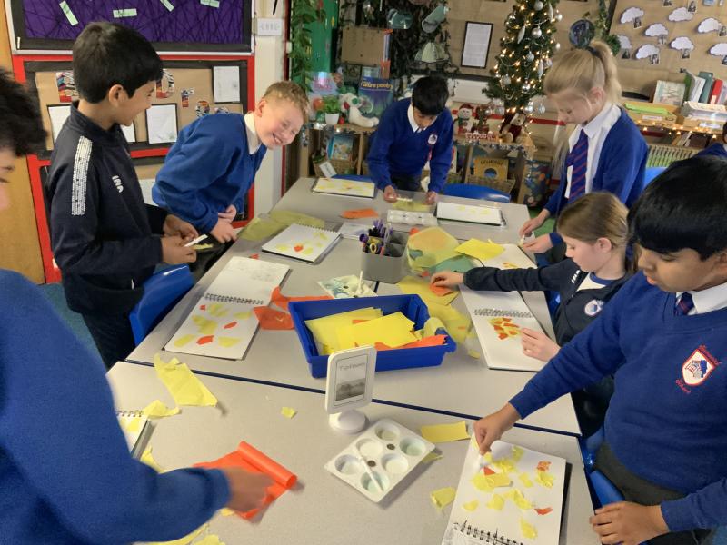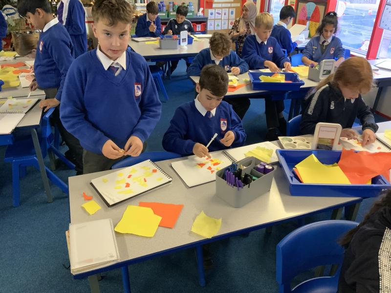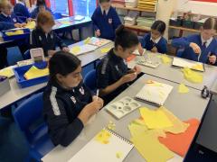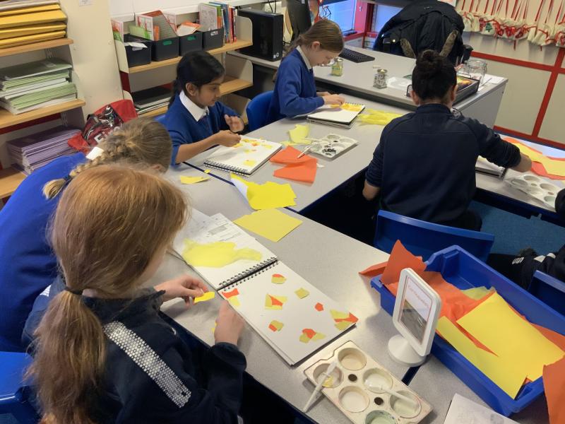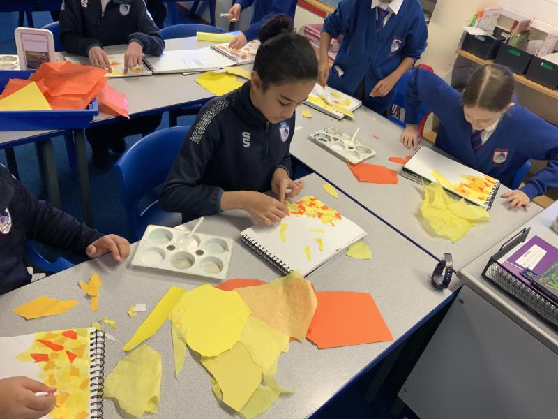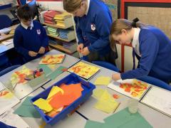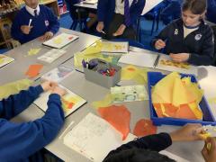 Year 6 have been studying the artwork of Gustav Klimt, over the past few weeks. They used viewfinders to identify key sections of his work, 'The Kiss', and this week, have begun to develop a collage of this section.
