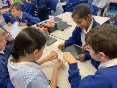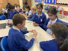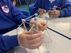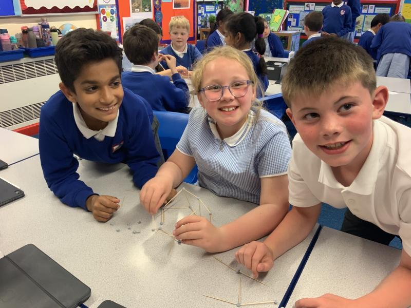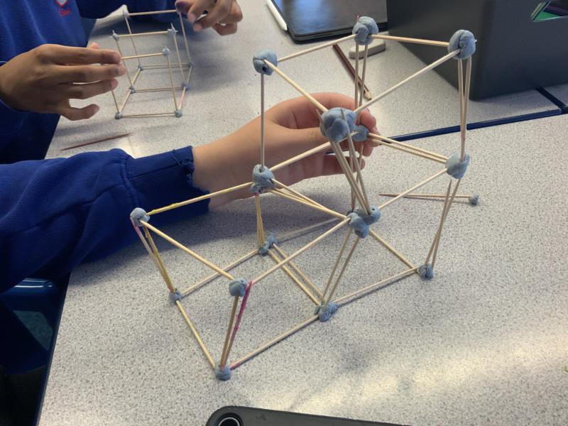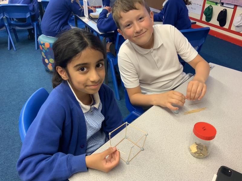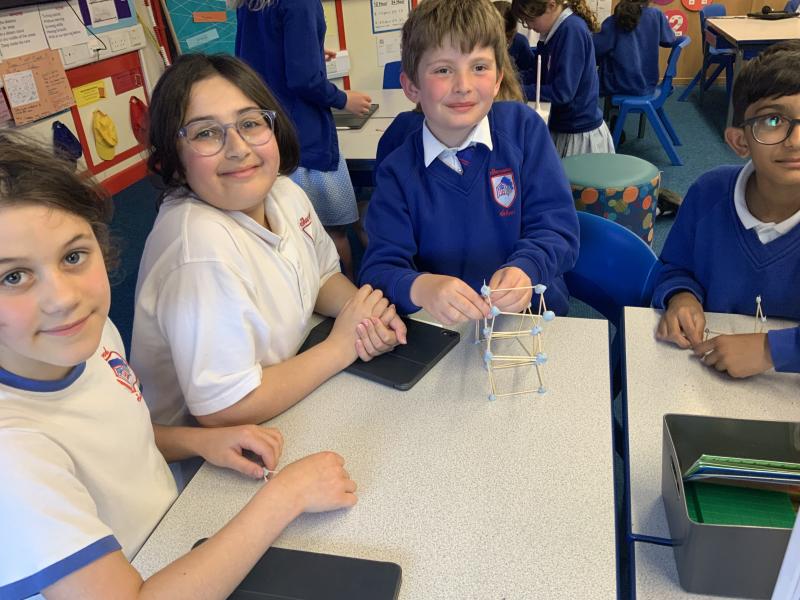 Year 4 have begun their new DT unit by exploring building stable structures using cocktail sticks and Blu tack. Some groups were very adventurous and built two-storey structures; others discovered that by doubling the cocktail sticks, they could strengthen the sides. They will use their new knowledge and experience over the next few weeks, when they build a model bird hide.