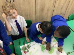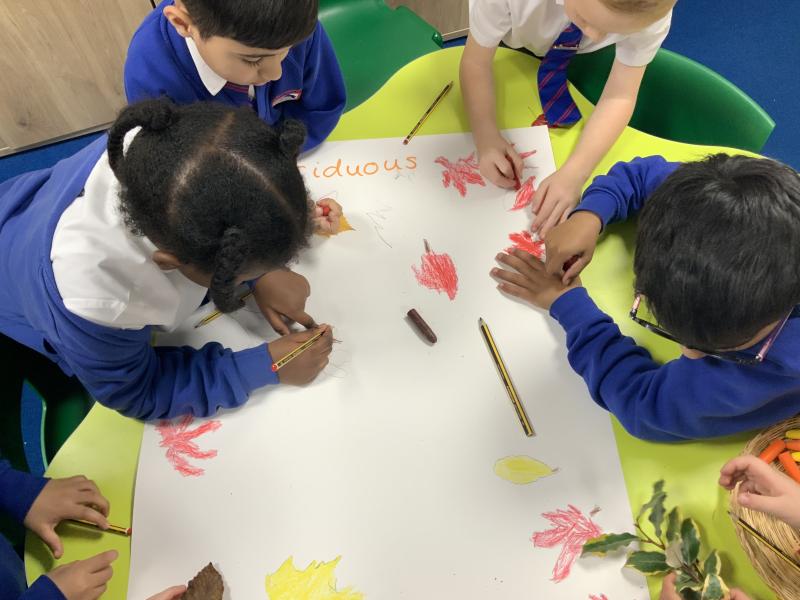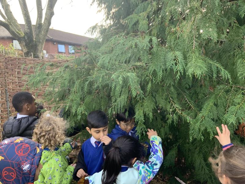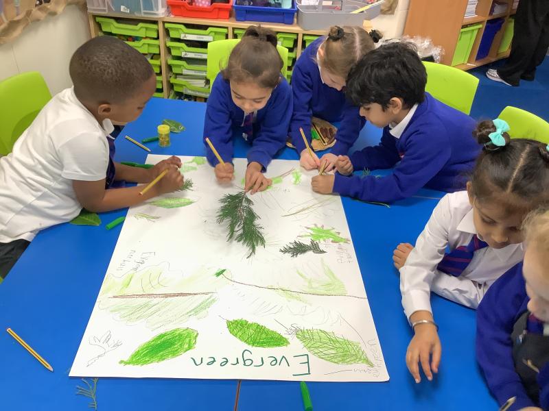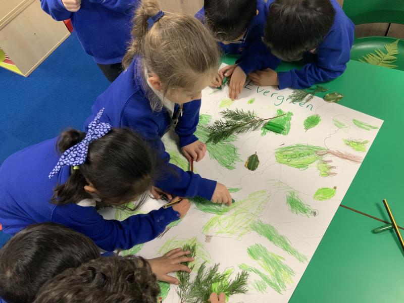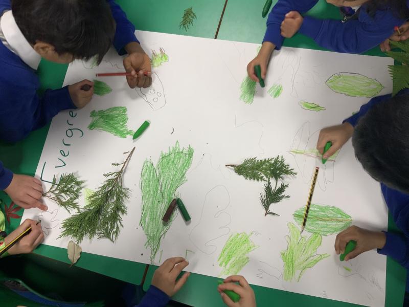 In Science, we have been exploring evergreen and deciduous trees on the school grounds. Year 1 have been using adjectives to describe the leaves from the trees (needle-like, crunchy, spiky).