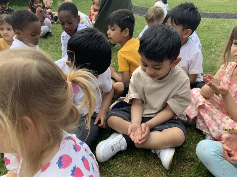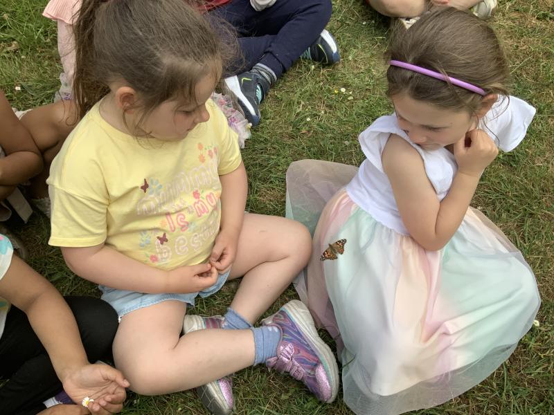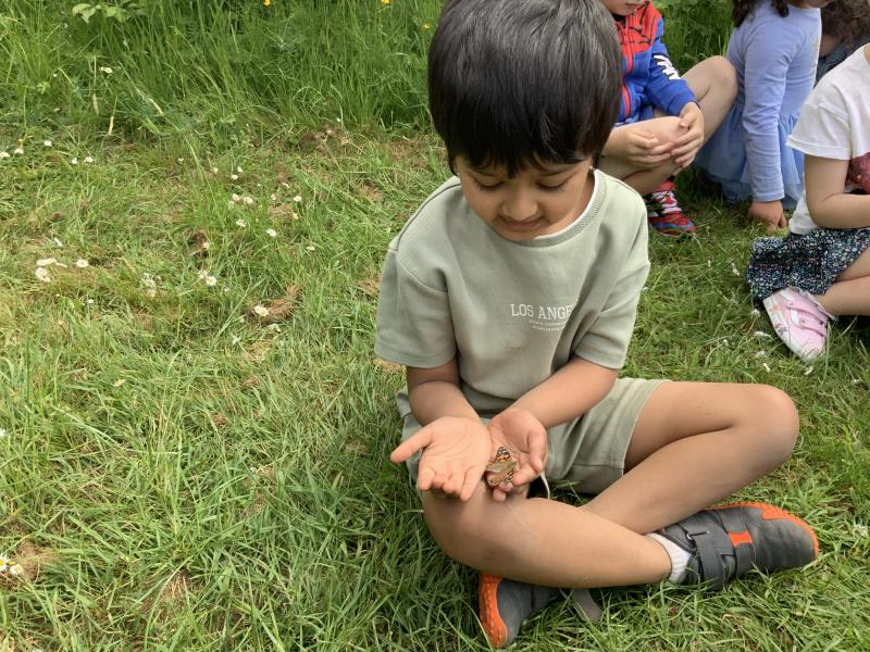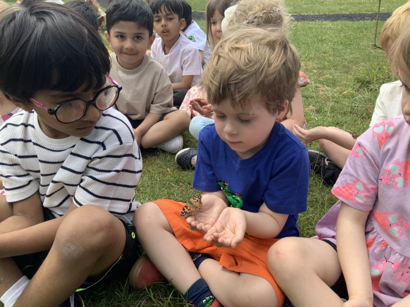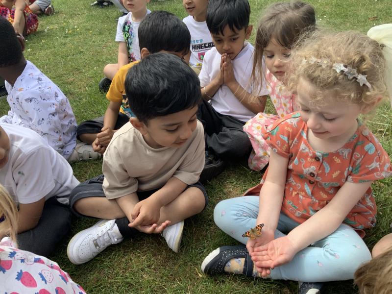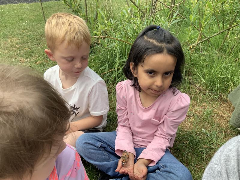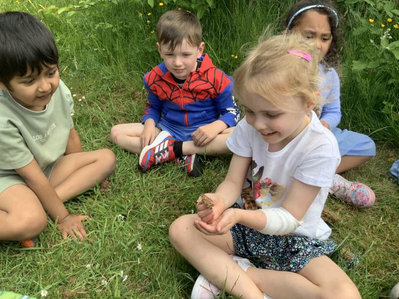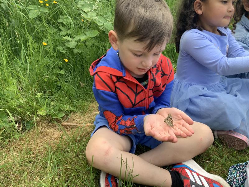 The children completed their learning about lifecycles this week, by releasing the butterflies they have observed growing and changing from the tiny caterpillars that arrived a few weeks ago. The butterflies were very friendly and stayed around for long enough for lots of the children to have a turn at holding them. Our frogs and froglets have also been released back into the pond this afternoon. Along with our chicks, now back at the farm, it has been a wonderful half-term of learning.