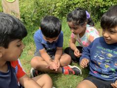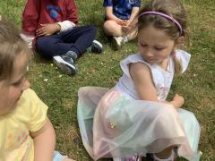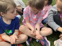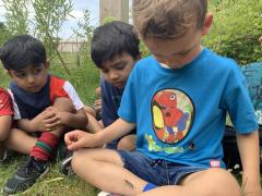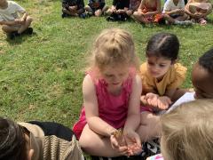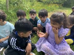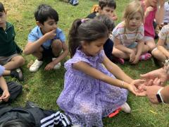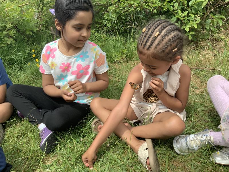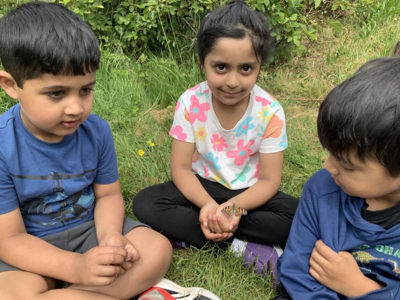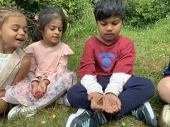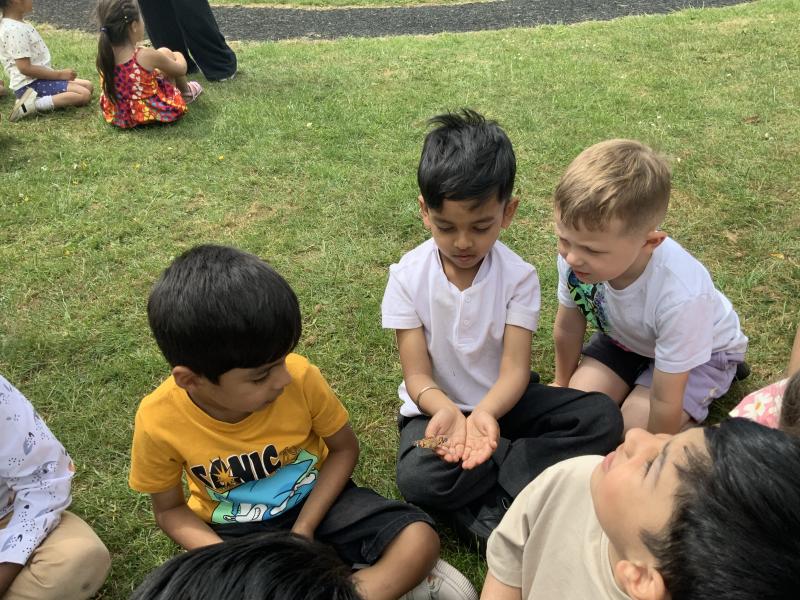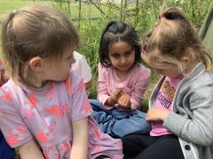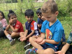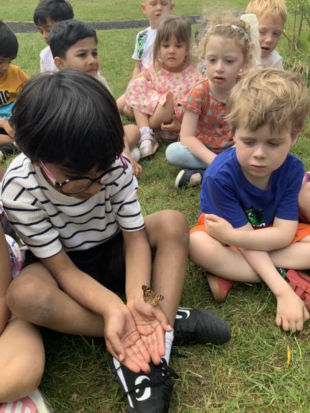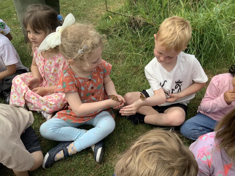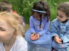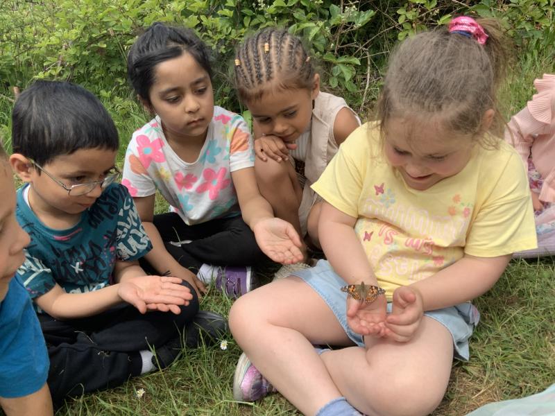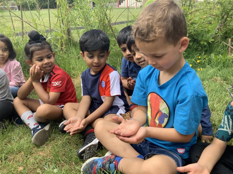 The children completed their learning about lifecycles this week, by releasing the butterflies they have observed growing and changing from the tiny caterpillars that arrived a few weeks ago. The butterflies were very friendly and stayed around for long enough for lots of the children to have a turn at holding them. Our frogs and froglets have also been released back into the pond this afternoon. Along with our chicks, now back at the farm, it has been a wonderful half-term of learning.
