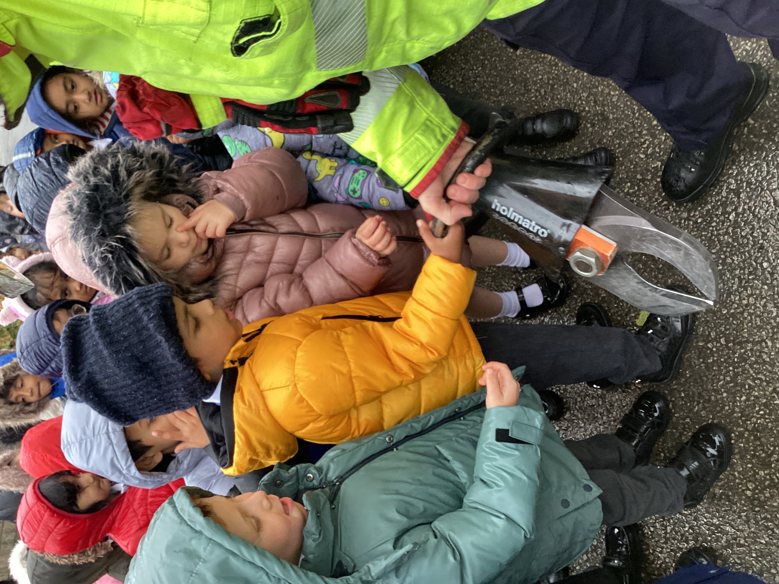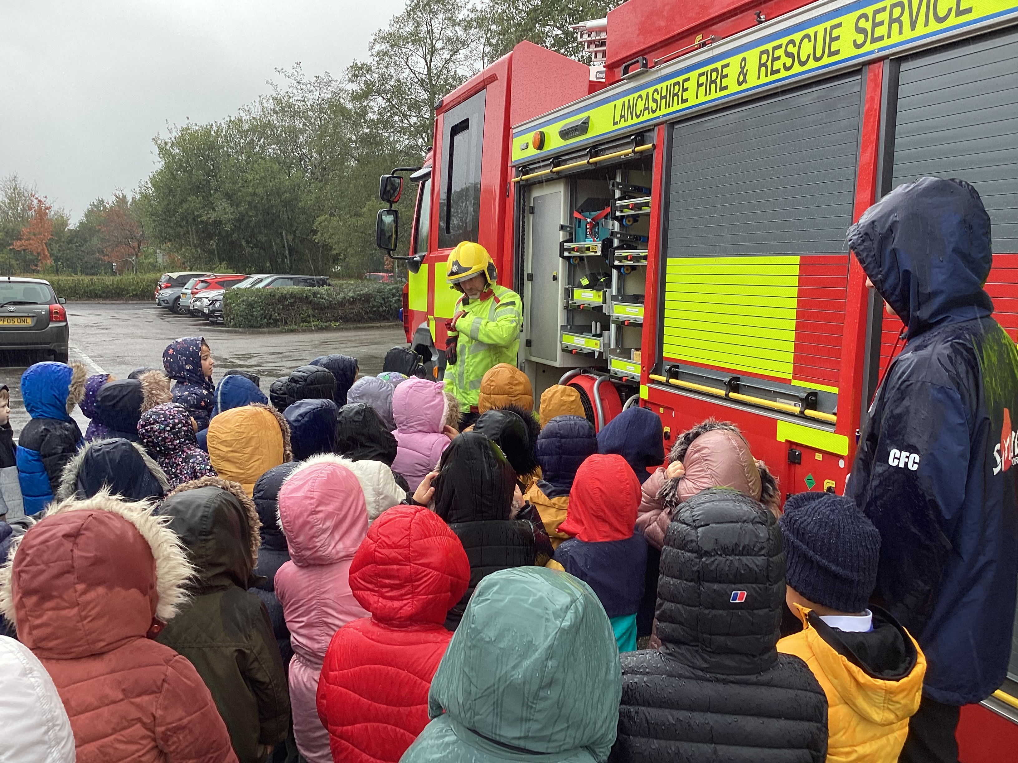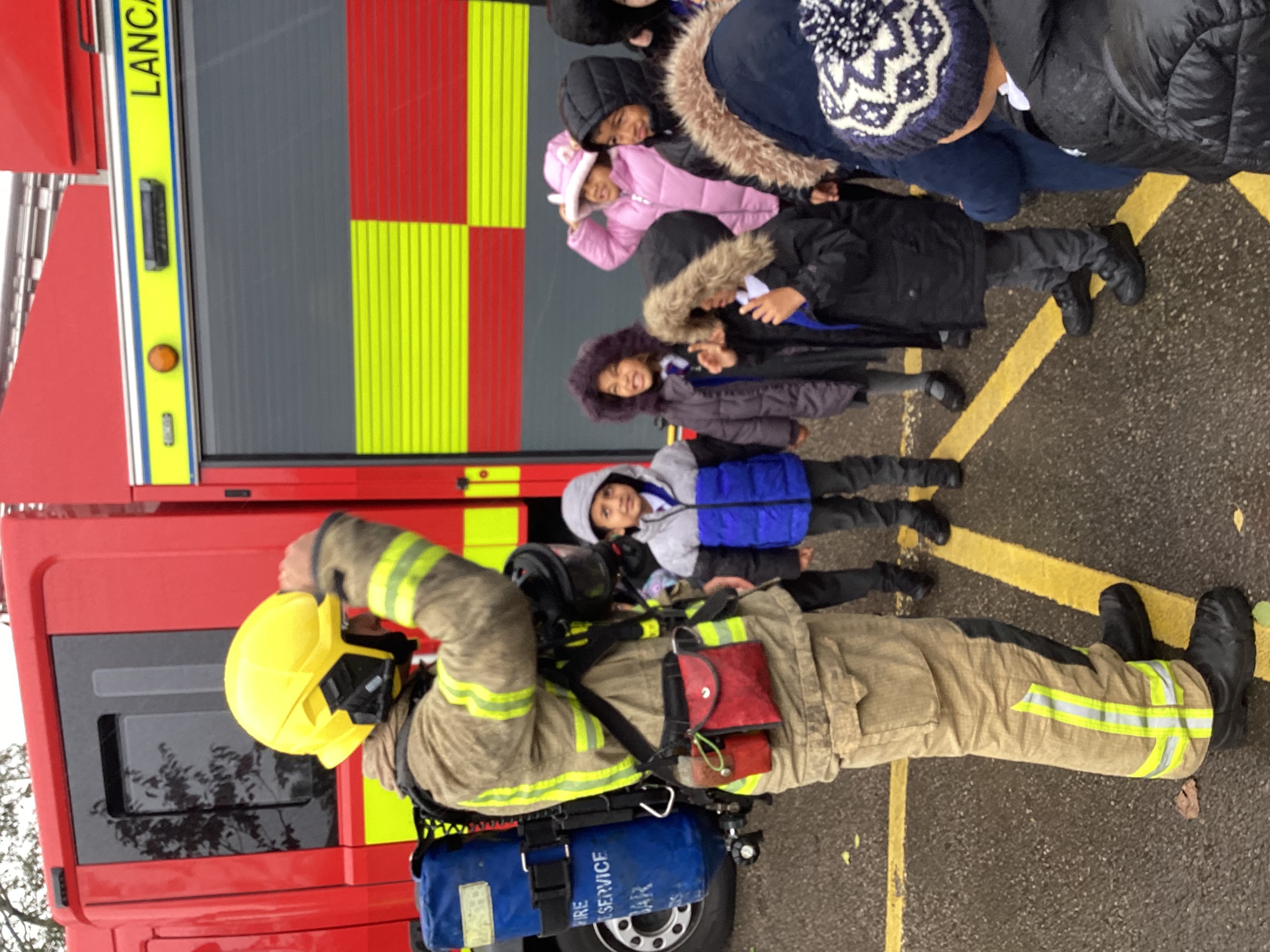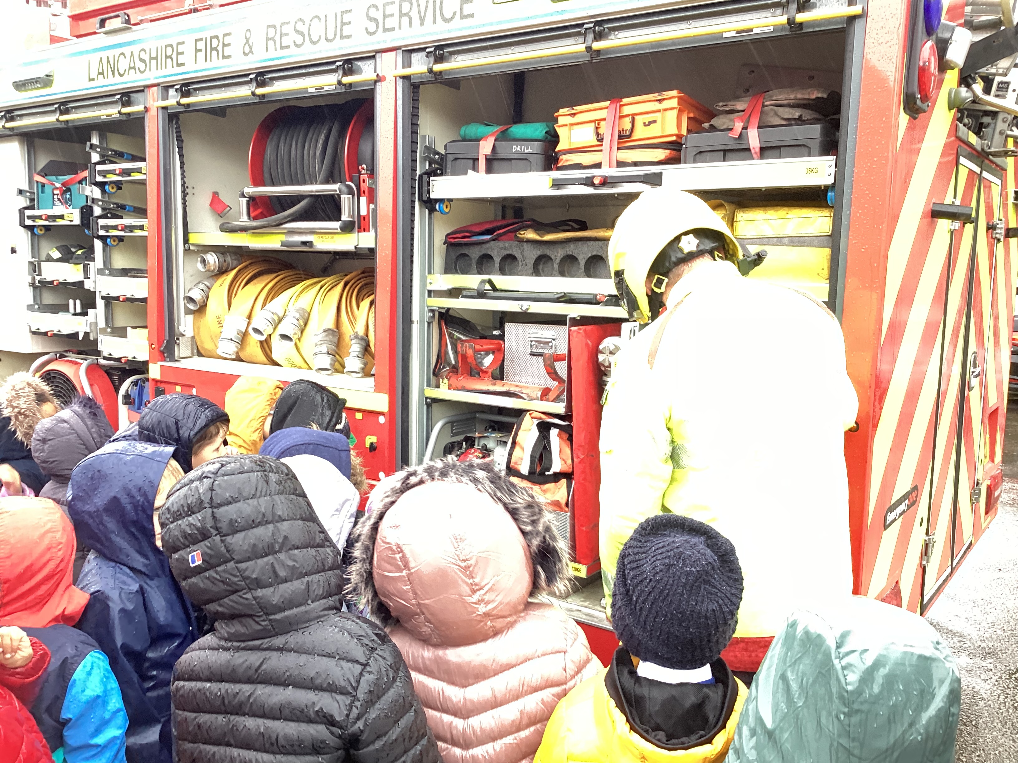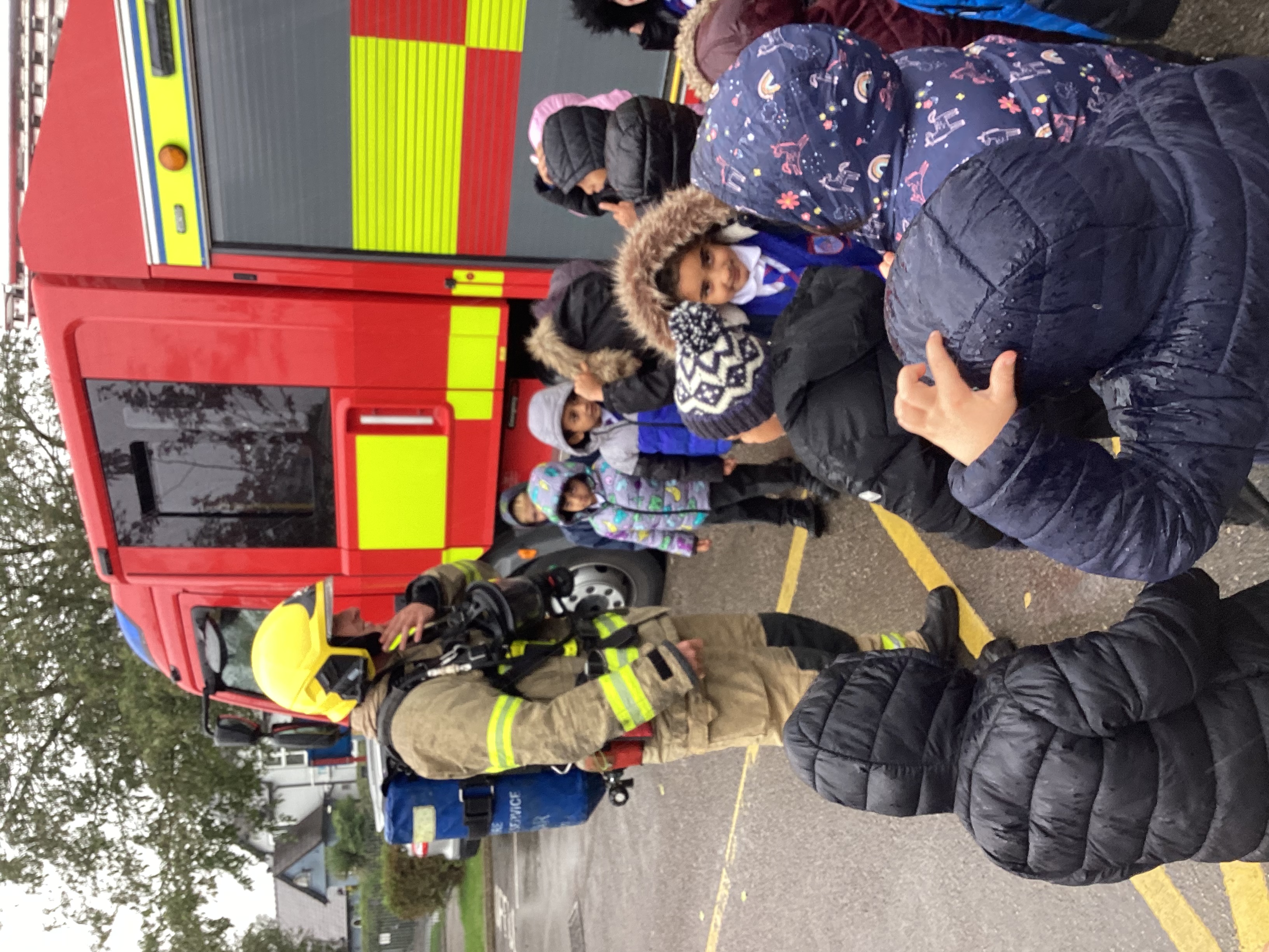 The children were super excited to welcome the fire fighters from Fulwood fire station this morning. They were keen to tell the fire fighters all about their role play in school over the past week. The fire fighters told the children all about their special clothing to keep them safe in fires and then began the tour of the fire engine. However, heavy rain began to pour and the visit had to be cut short. The fire fighters have promised to return to complete their visit very soon.