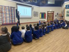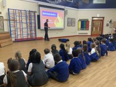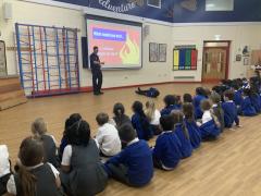 We had a visit from firefighters today. We learnt about good fires and bad fires, as well as what to do if we see as fire. Remember: get out, stay out and dial 999!