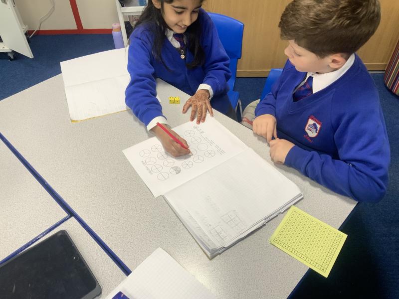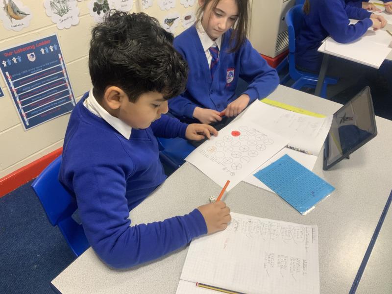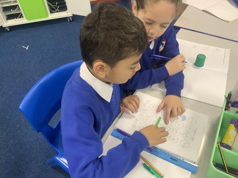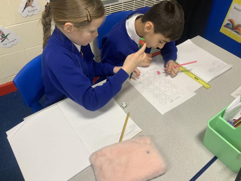 In Year 3, we started the week strong with our fractions work. We played a game whereby the children rolled two di to make a fraction. They then had to identify the fraction on their sheet and colour in the fraction they have made, on their sheet. The children were great at identifying the different fractions!