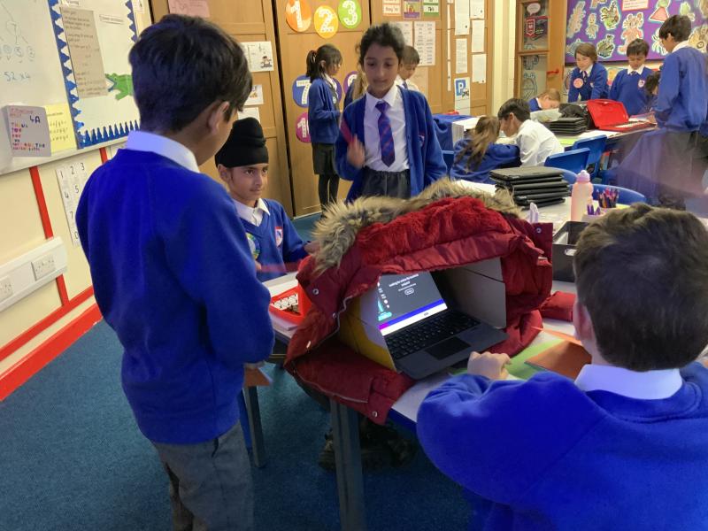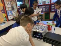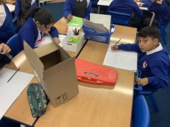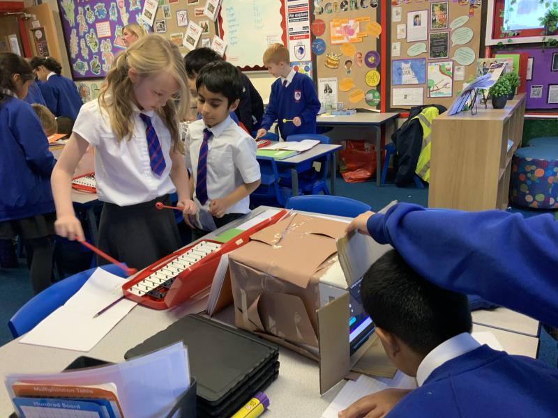The children in Year 4 have concluded their Science topic with an experiment to look at the insulation properties of a number of materials. They aim was to look at ways to soundproof a room to allow quiet working. The children looked at tone and pitch before recording the noise behind chosen materials for insulation. The children had great fun looking at how to minimise sound.