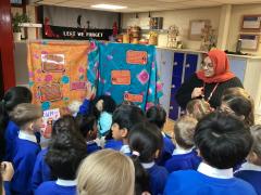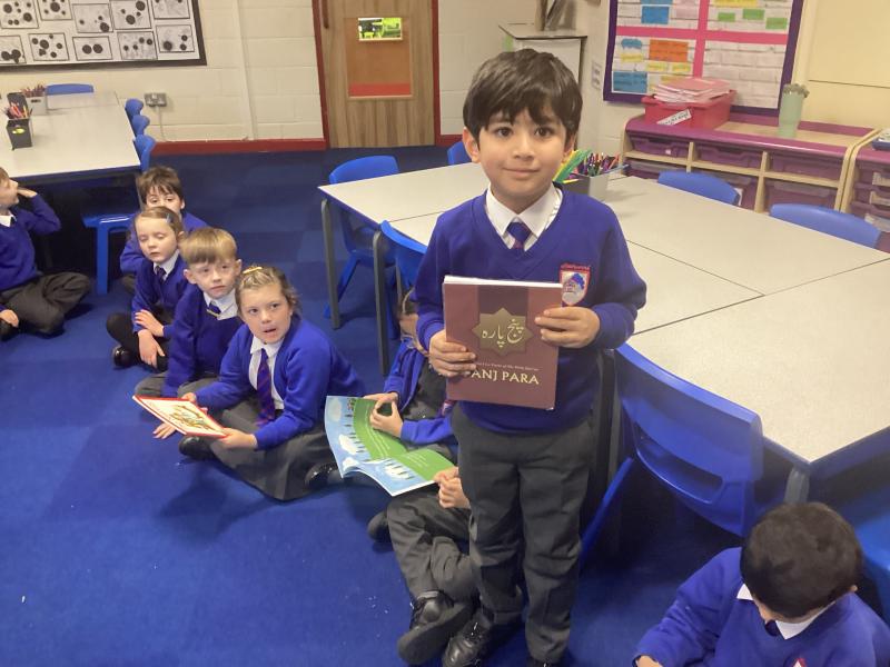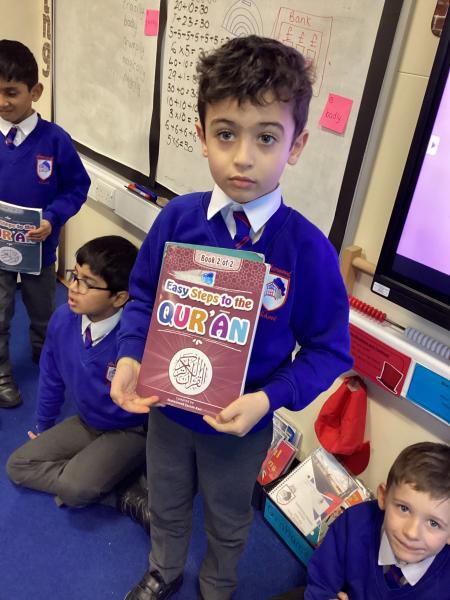 During our RE lesson, we visited our faith stations looking at special books. Children also brought their own special books. Some brought their own Quran or Bible while others shared special books from special people in their lives.