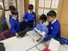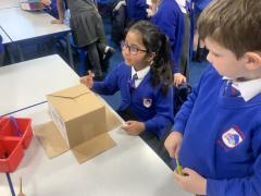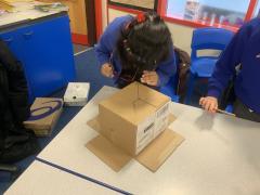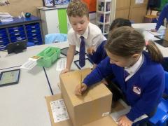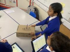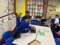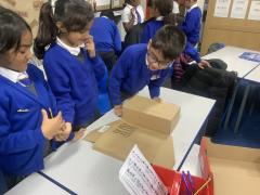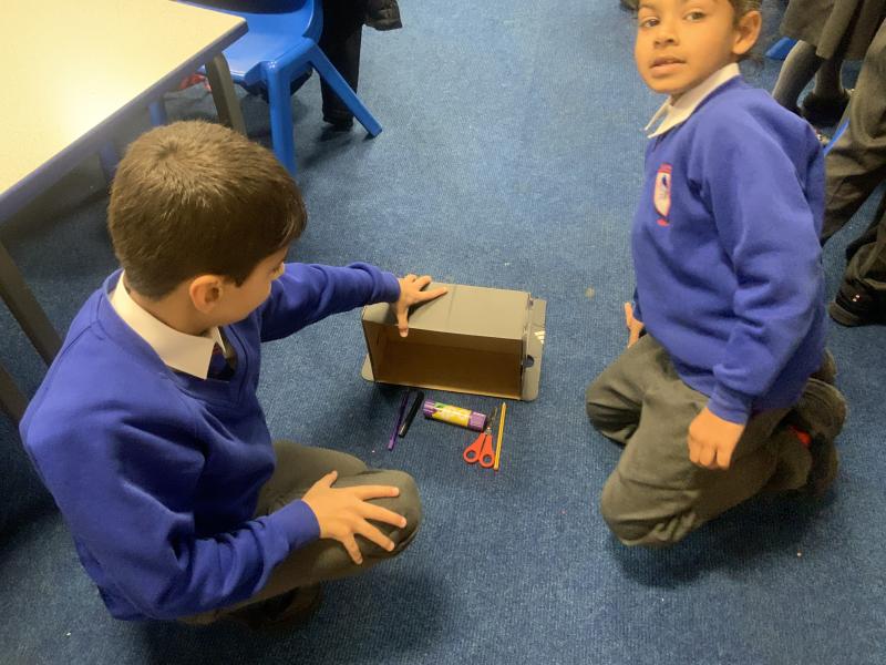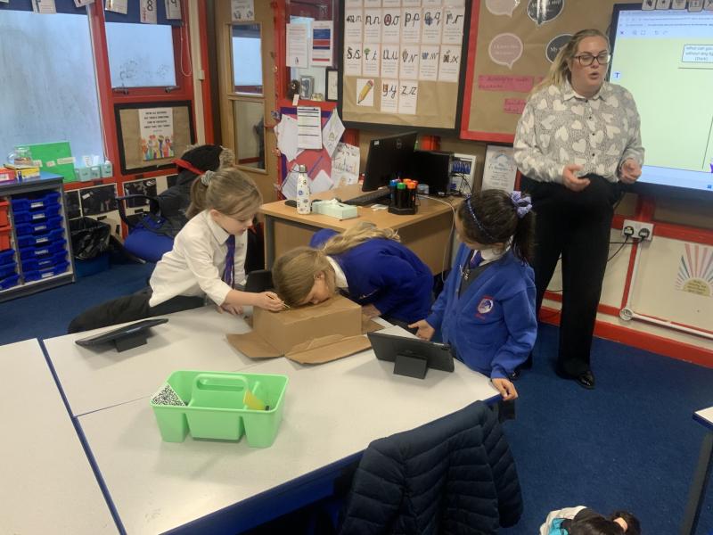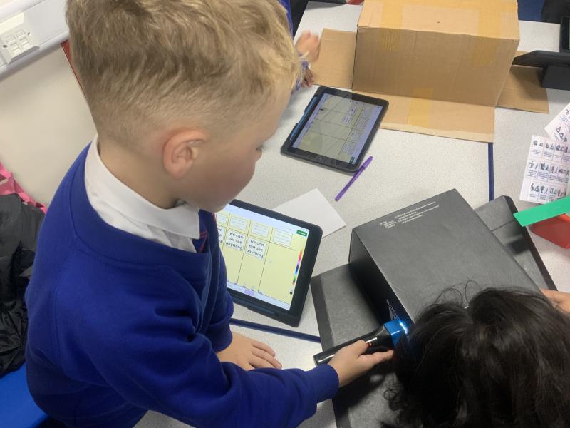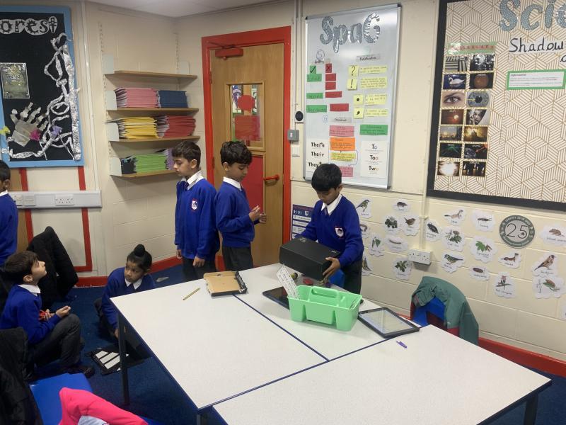 Today, the children in Year 3 learnt that darkness is the absence of light. Using cardboard boxes, torches and some classrooms objects, the children investigated what they could see with and without a direct light source. They recorded their results on a table on SeeSaw.