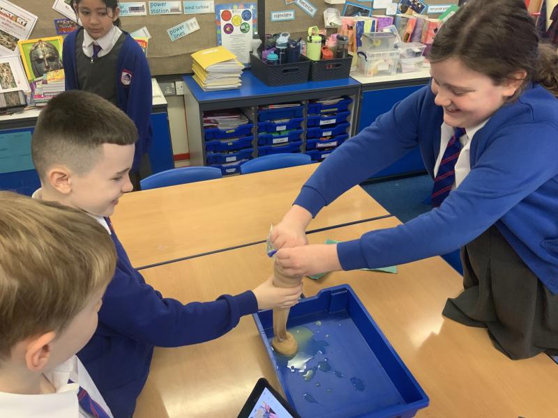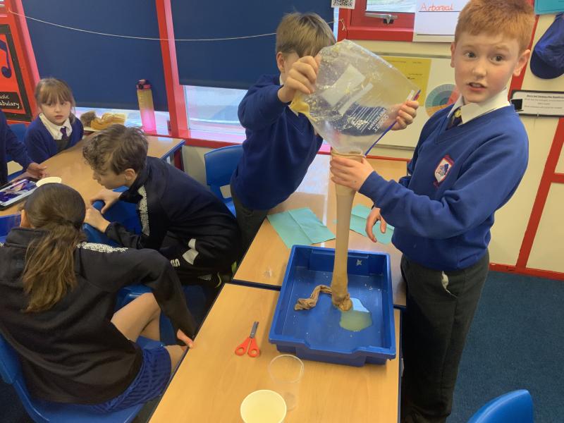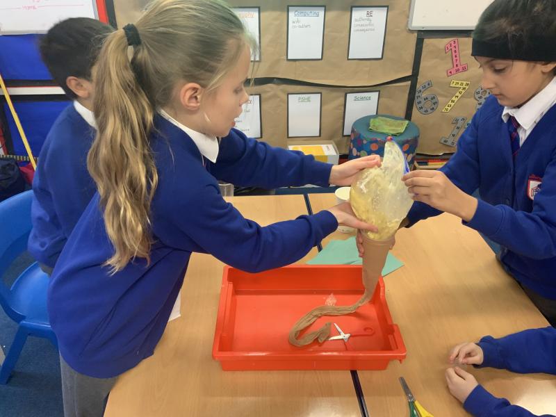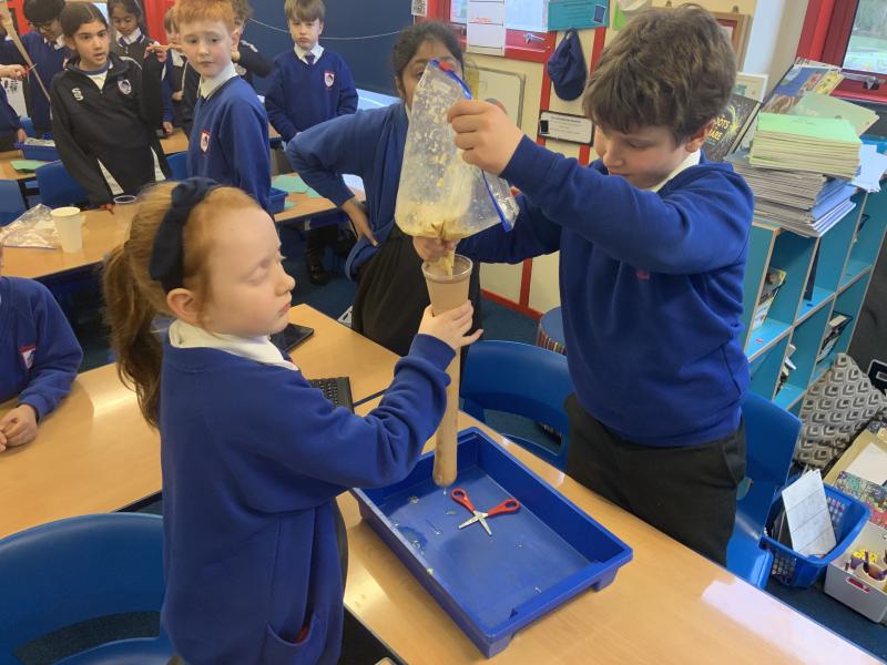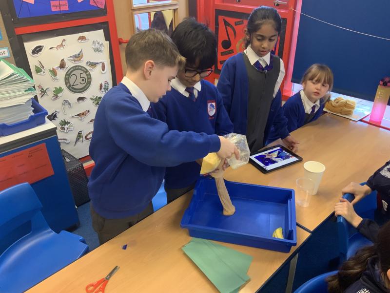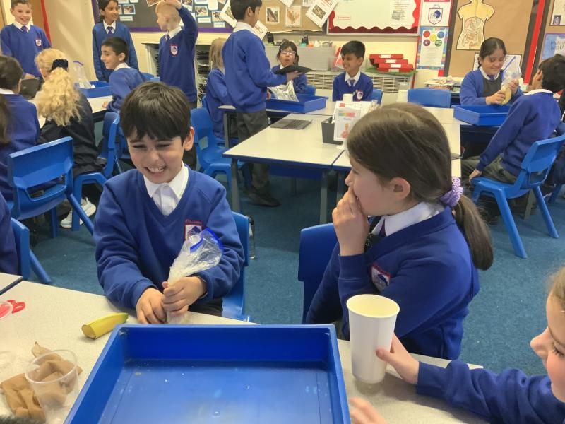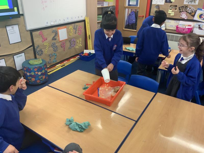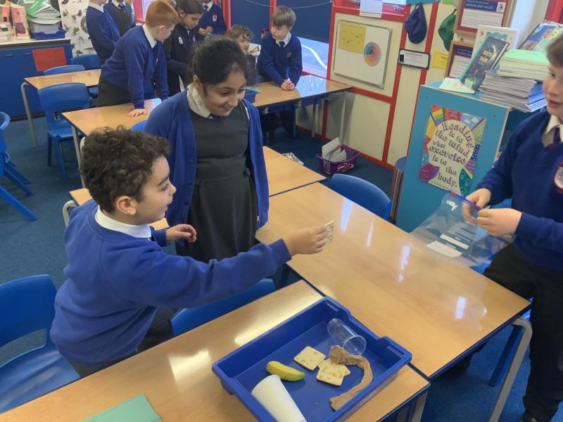 This afternoon, Year 4 have been investigating the digestive system in a number of ways. After discussion they have identified the main stages of the process, naming each one and the organs involved. This leant itself to getting really practical and showing the process in a simpler form using tights and cups. The children completed both a fascinating and gross experiment and enjoyed every minute. Quiz them when they get home, or recreate the experiment.