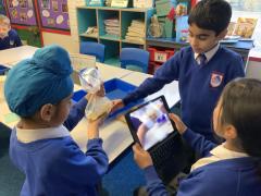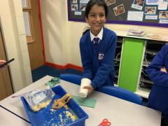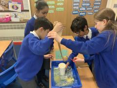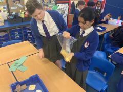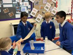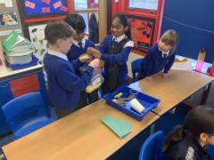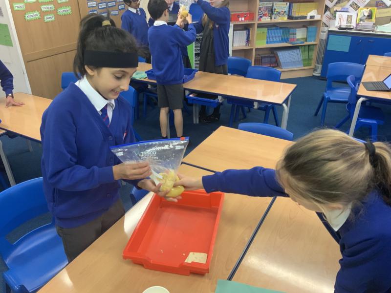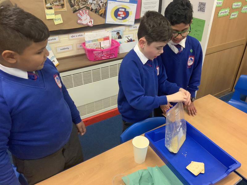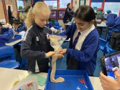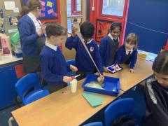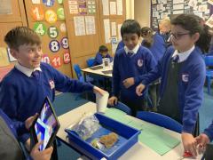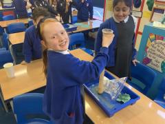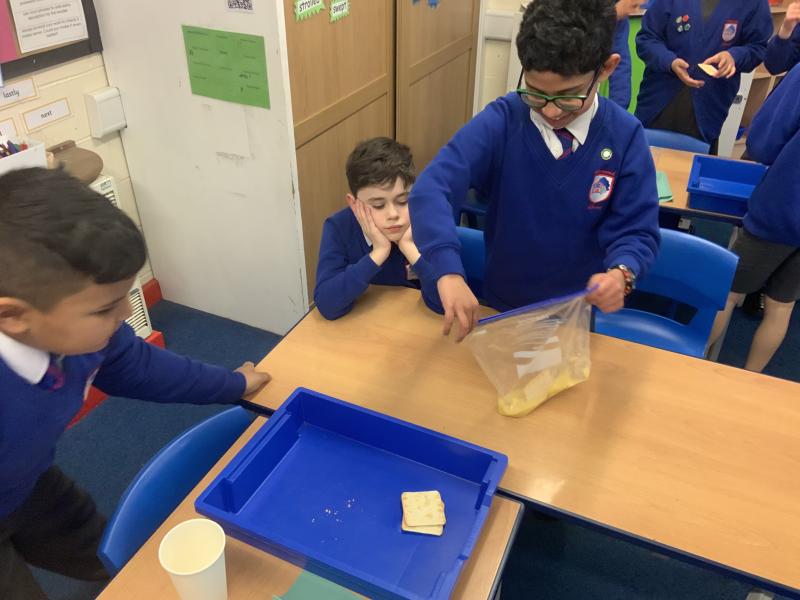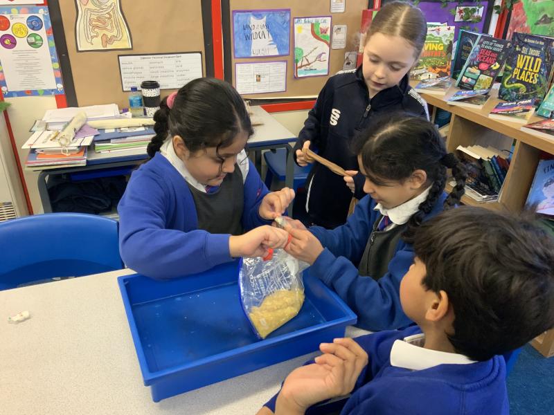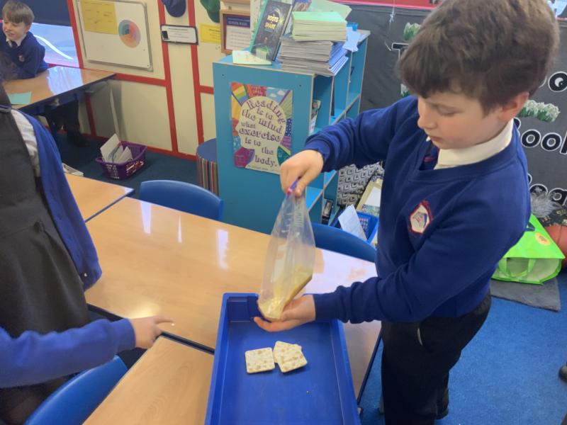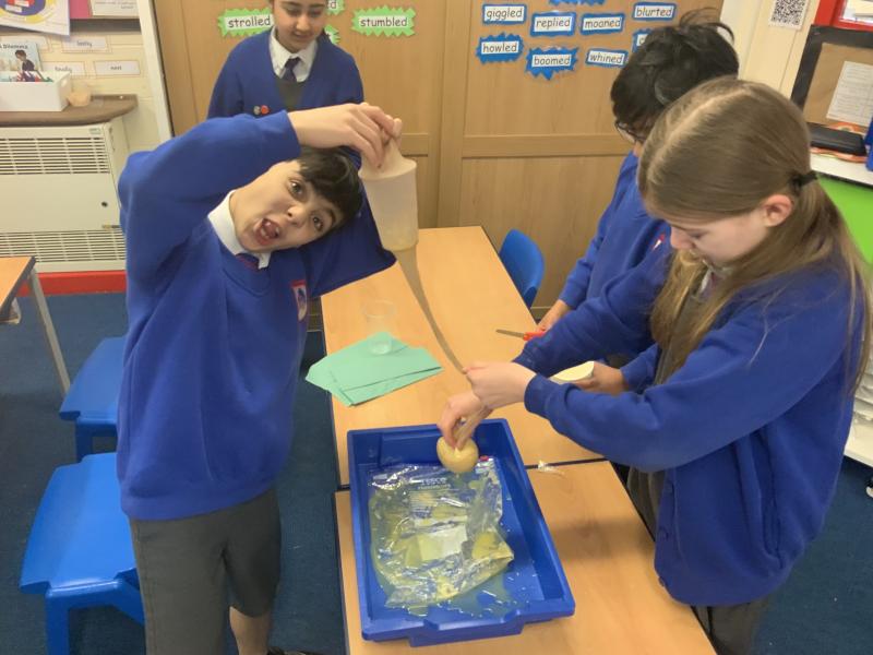 This afternoon, Year 4 have been investigating the digestive system in a number of ways. After discussion they have identified the main stages of the process, naming each one and the organs involved. This leant itself to getting really practical and showing the process in a simpler form using tights and cups. The children completed both a fascinating and gross experiment and enjoyed every minute. Quiz them when they get home, or recreate the experiment.