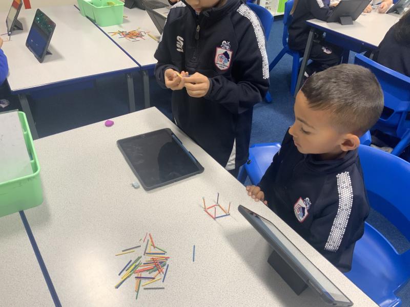 The children in Year 3 have been learning about 3D shapes this week. The children have been making some 3D shoes using match sticks and blue tack.