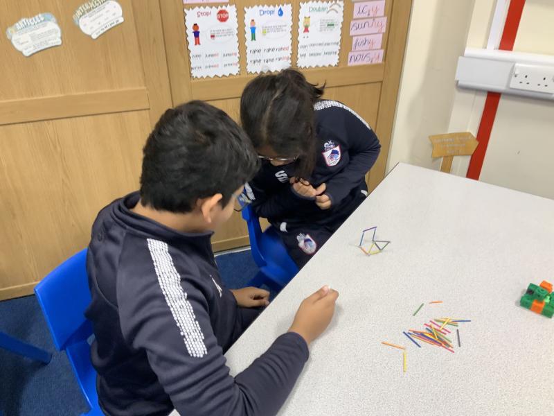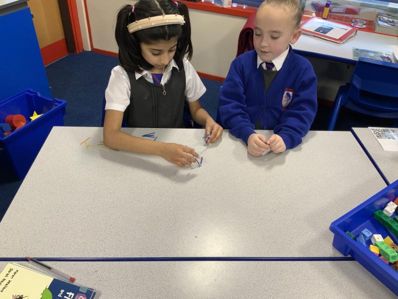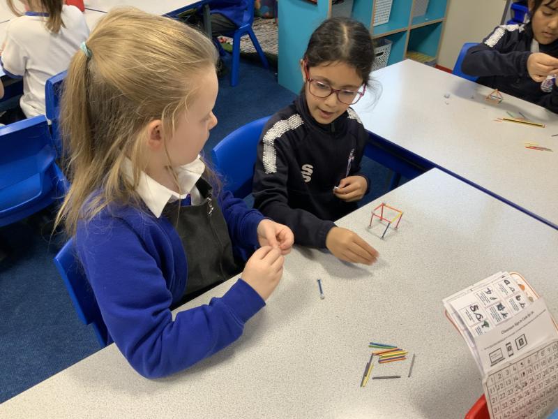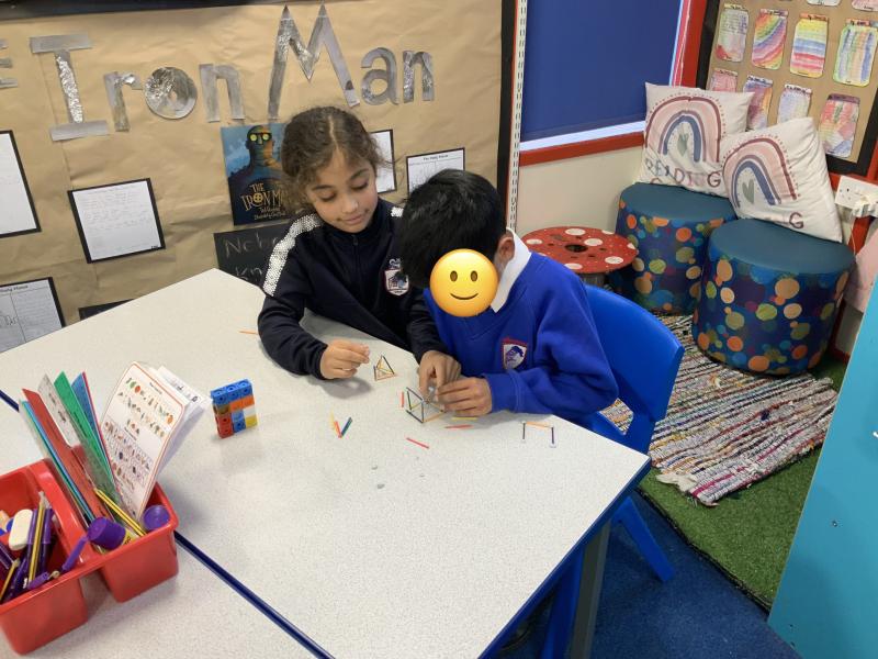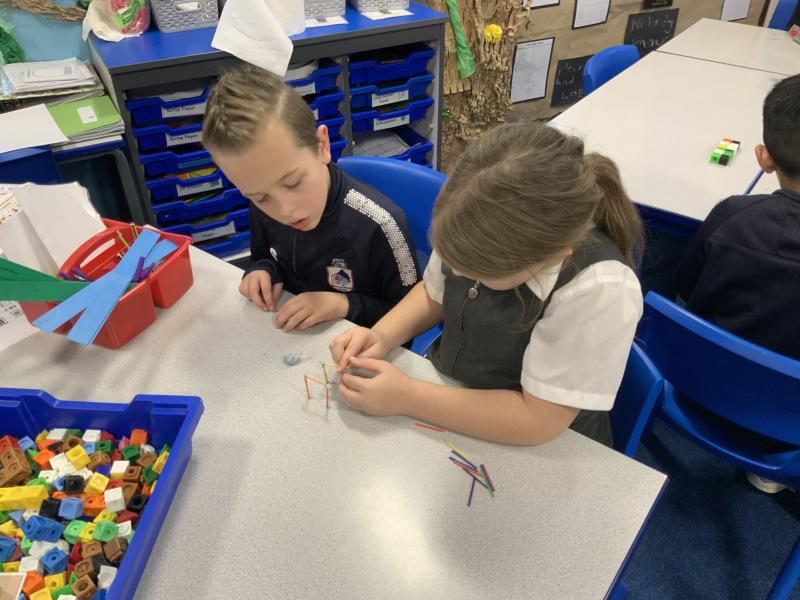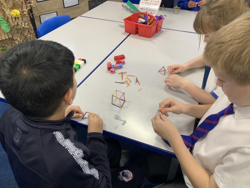 In Maths this week we have been exploring the properties of 3D shapes and today we had a go at building some!
