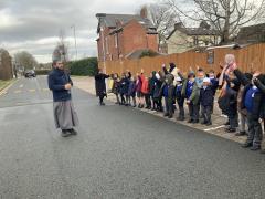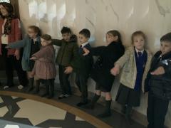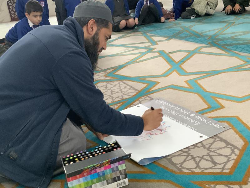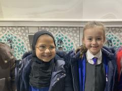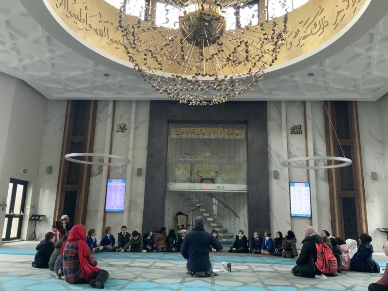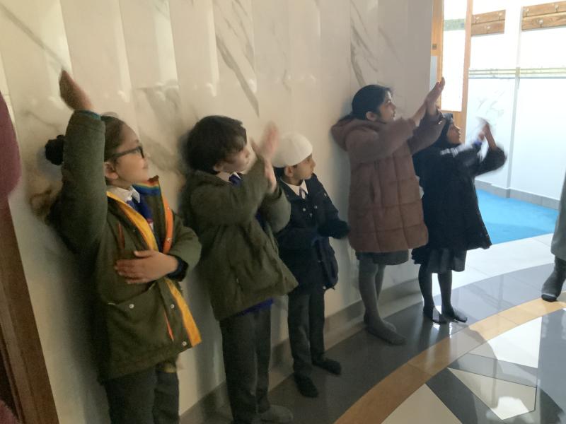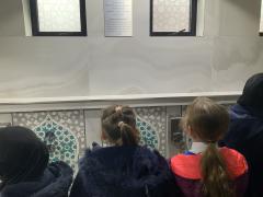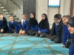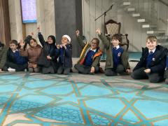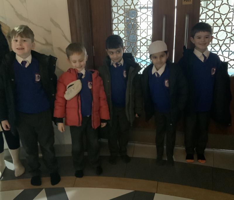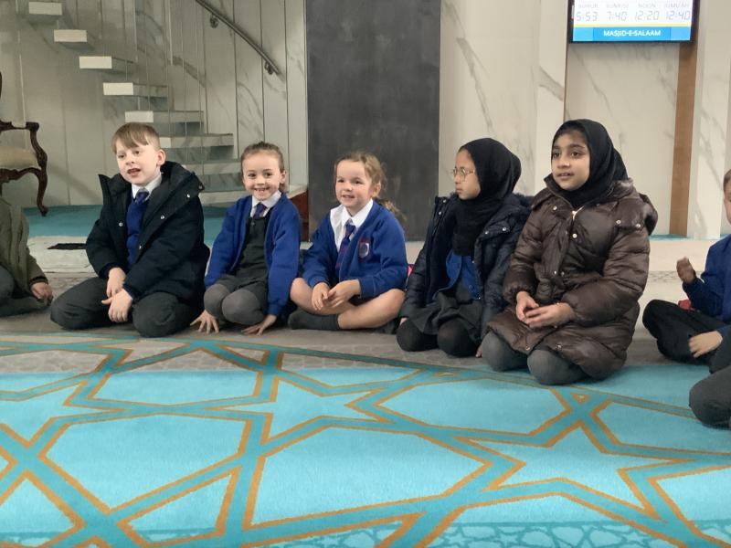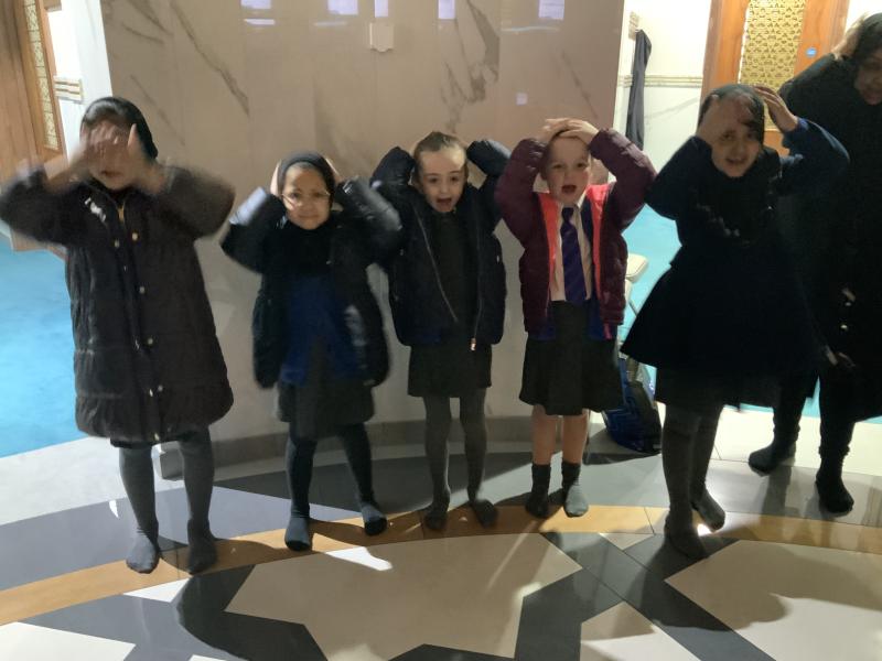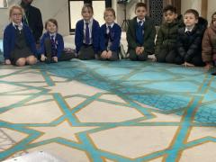 We enjoyed our visit to Masjid e Salaam mosque in Preston. We saw the minaret where the call to prayer is made and we saw the wudhu area that we had learned about and we spotted lots of geometric patterns around the mosque. Finally, we went into the prayer hall.