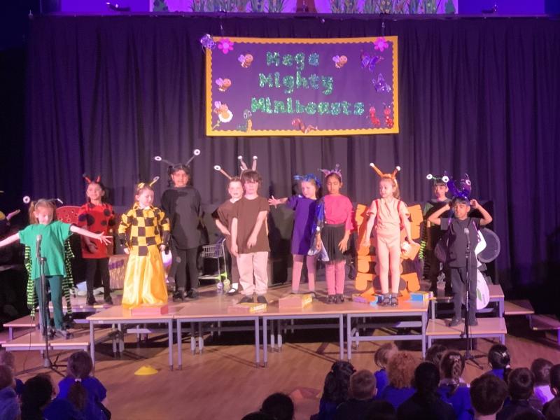 We loved sharing our performance of Mega Mighty Minibeasts with you all this week. We hope you enjoyed learning about the importance of all creatures, no matter how big or small they are. They are all such an important part of our ecosystem; whether they are decomposes, pollinators or recyclers. We also loved sharing our love of reading through our main character, Ramble the librarian!