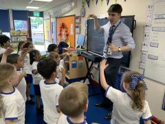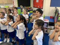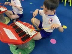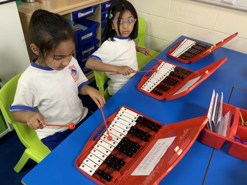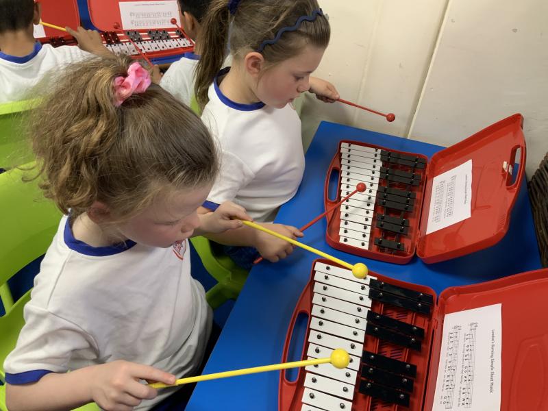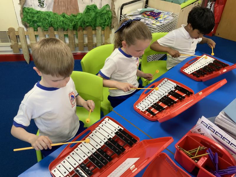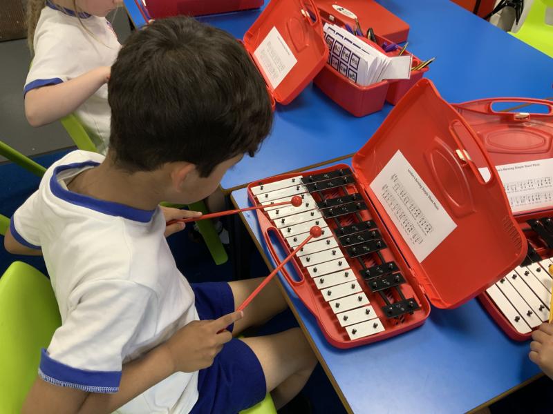 In Music we have been singing with Mr Spencer from Stoneyhurst school. It has been a lot of fun learning new songs and lots of musical vocabulary! We have also been busy playing our glockenspiels and reading music!