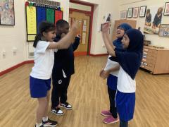The children in Year 5 have been inventing a dance to the music 'Food, Glorious Food'. Their ideas are very original and their movements are exceptionally controlled. We look forward to developing these dances further, ready to perform in a few weeks' time.