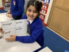 We love our spelling lessons! Today we focused on our Y2 common exception words. We played spelling quarters and then learnt how to spell using triangle words for the first time.