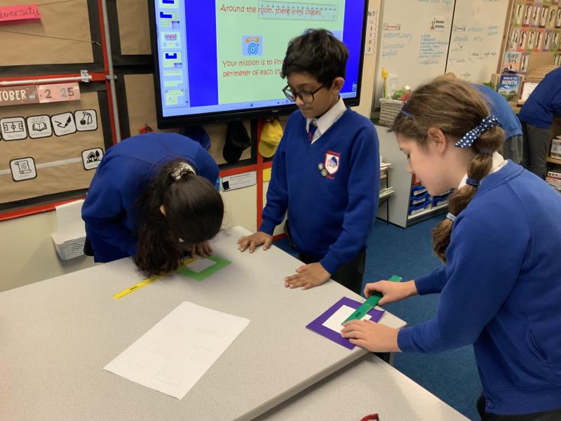 Today the children in Year 5 were tasked with a very important mission........They had to work in a team to measure (ACCURATELY) the perimeter of rectilinear shapes.