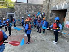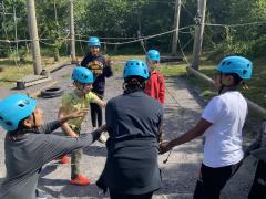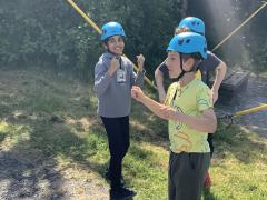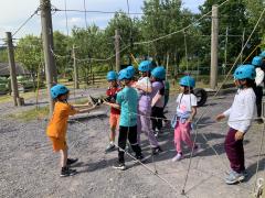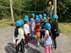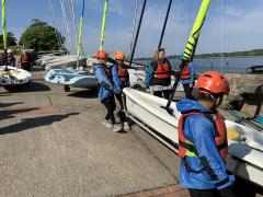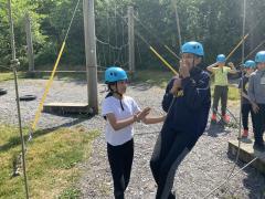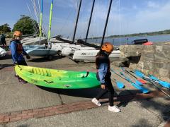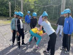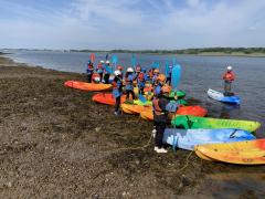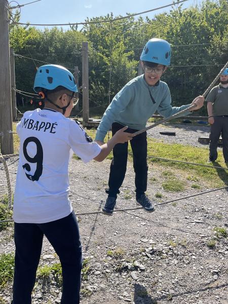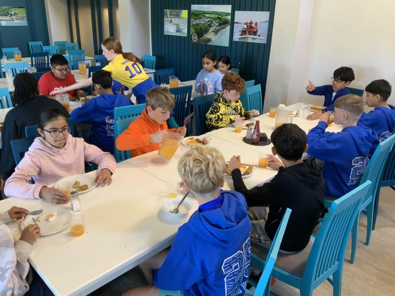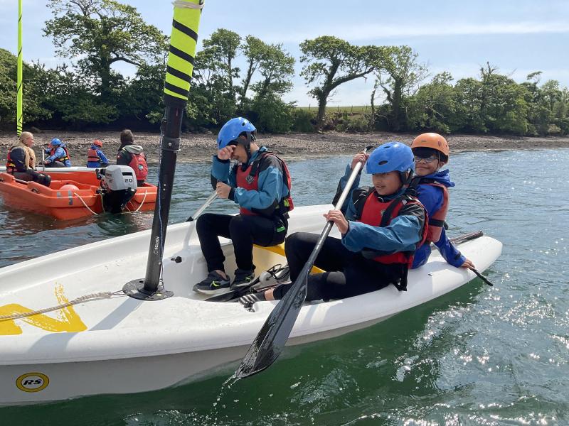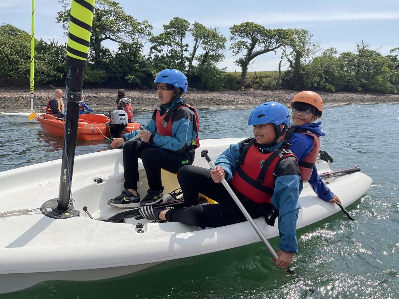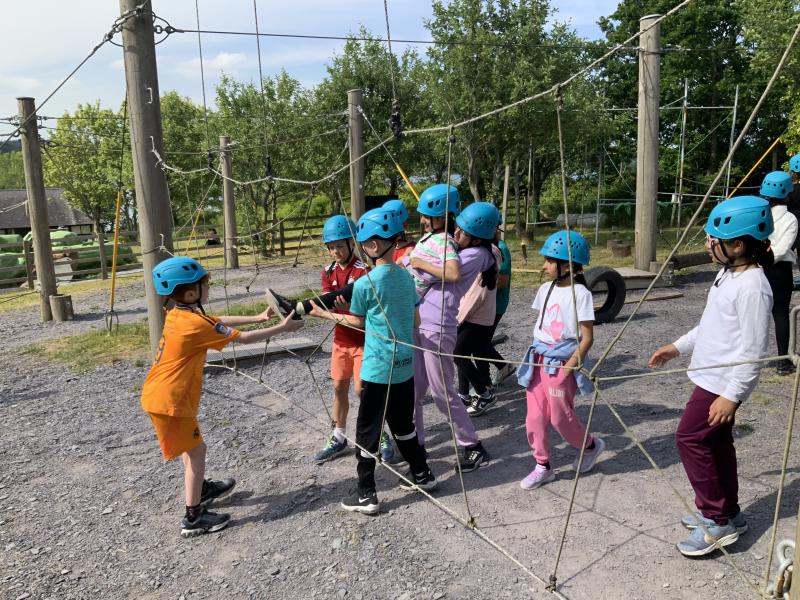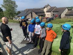 What another beautiful and jam- packed day today at Plas Menai. Last night, the children had a good meal and slept well. Today, two groups were able to sail down the Menai Straits, learning how to turn and lerning how to paddle. Another two groups were able to kayak up until a part of the beach and played some games on the beach. The weather has been fantastic and the sea conditions have been fab! We are currently completing our afternoon activity, caving, biking and climbing! All the children are having a wonderful time!
