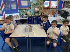 Today we learnt recorder note C to play alongside our DISCO song. It is the first time we have used our recorders but we loved it!