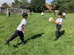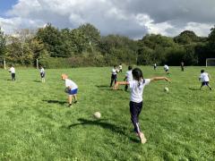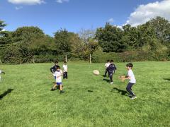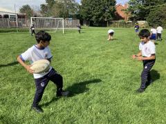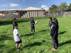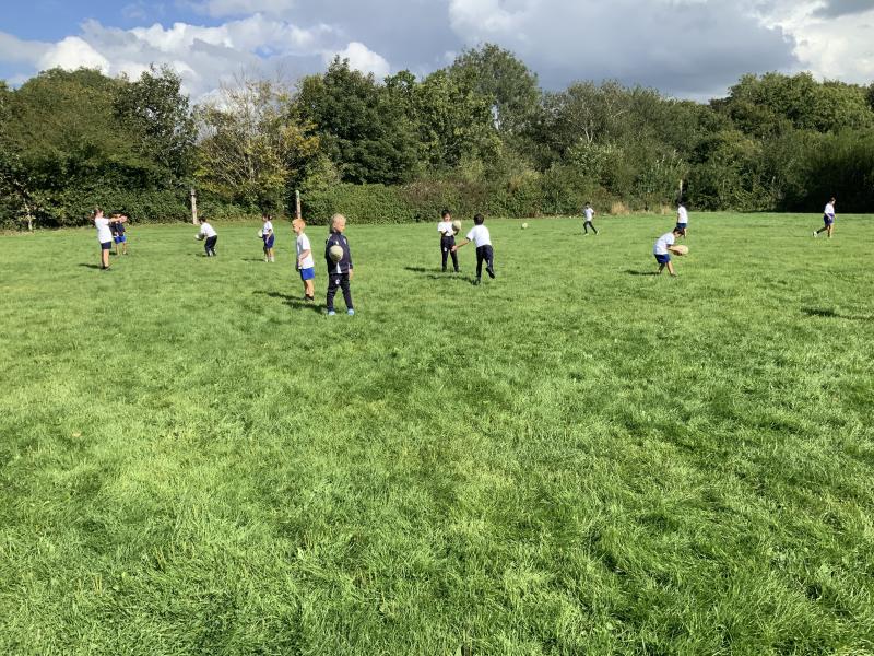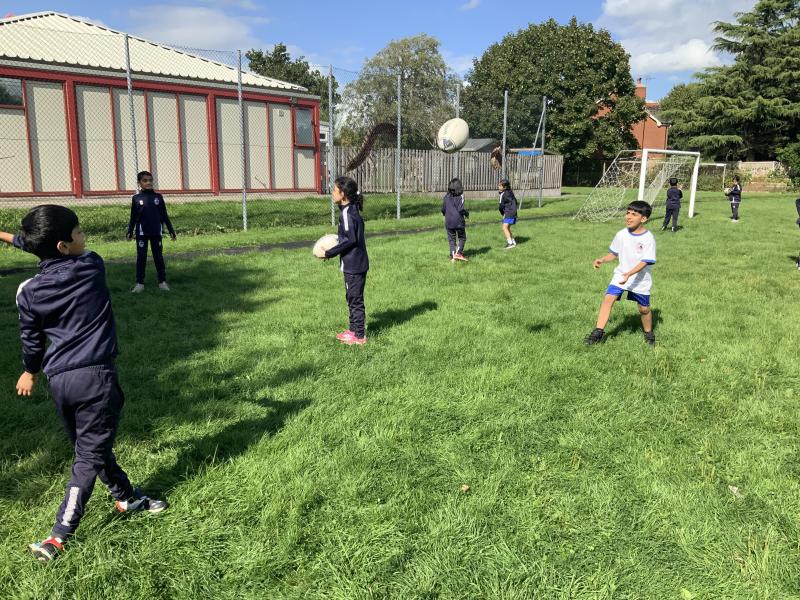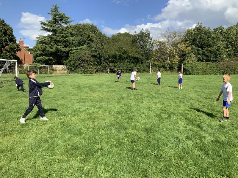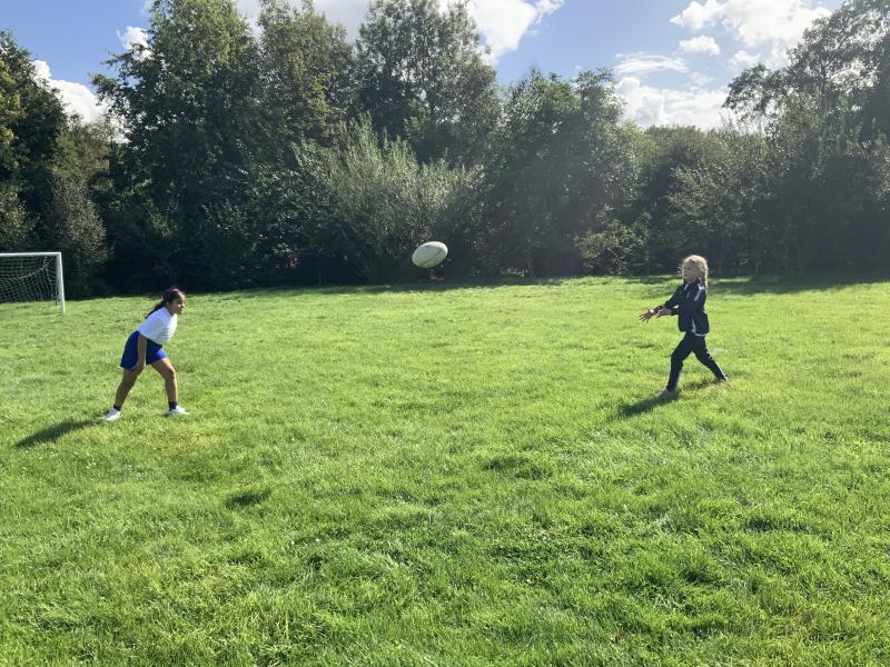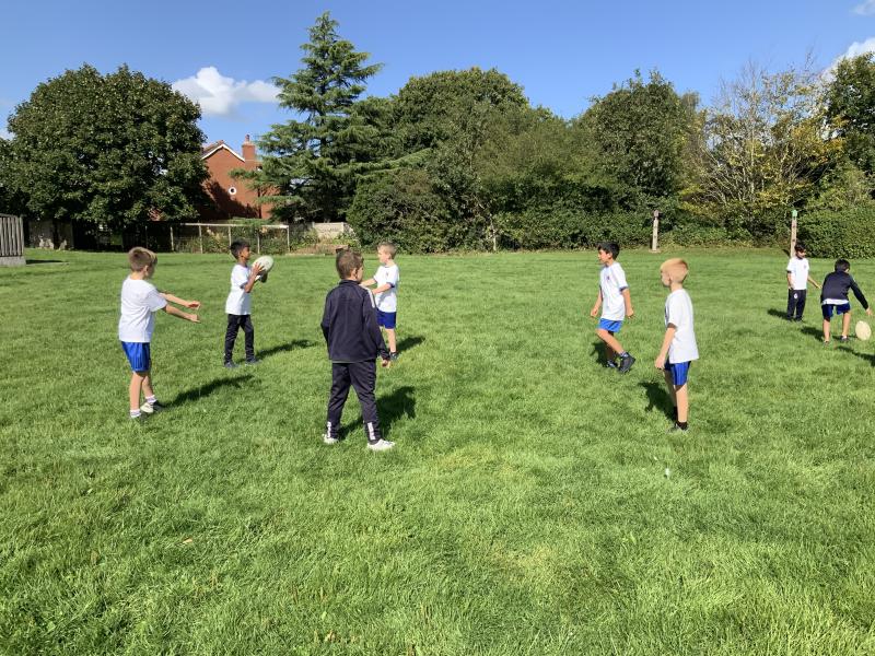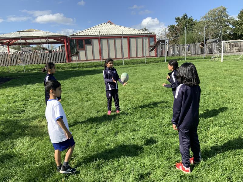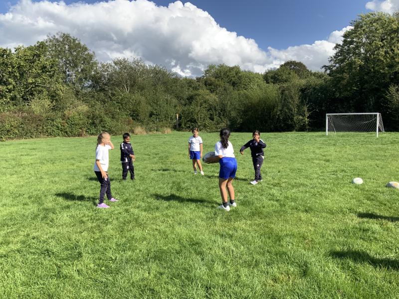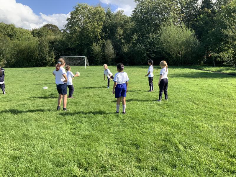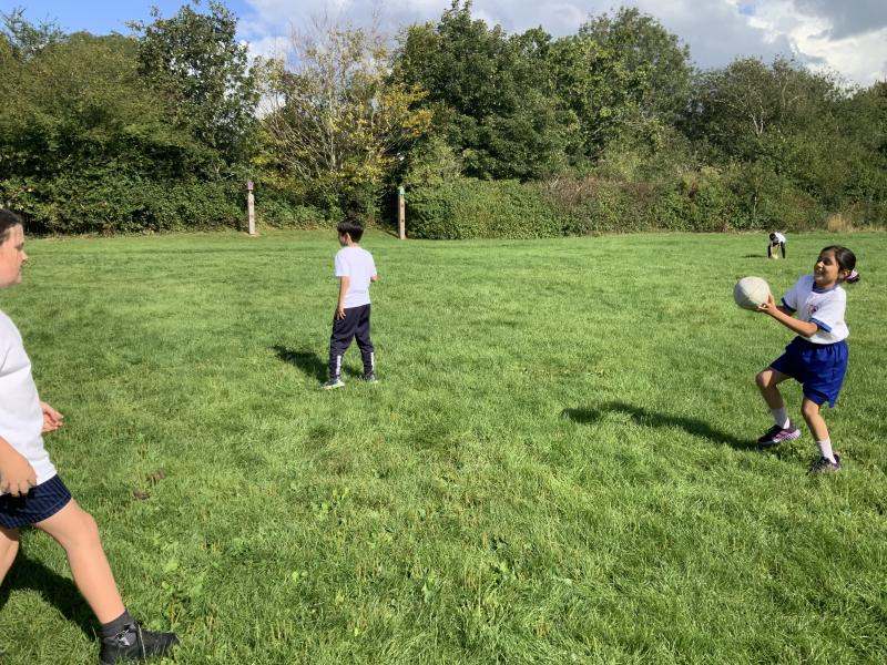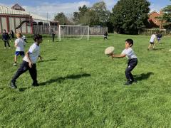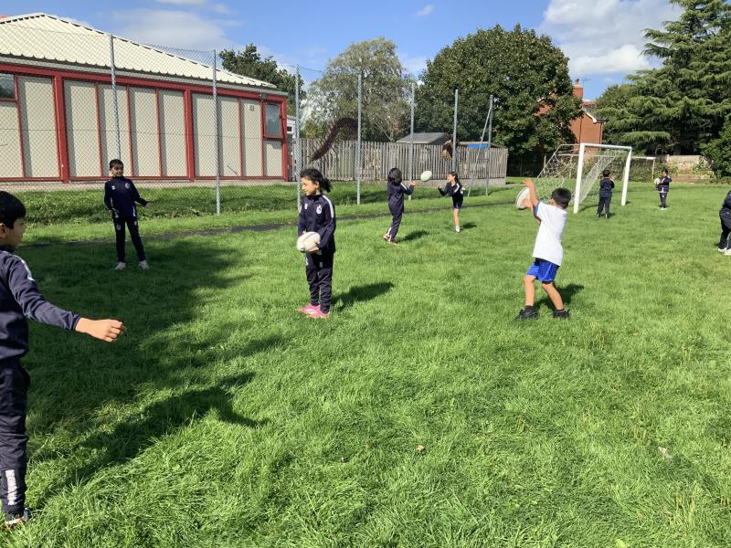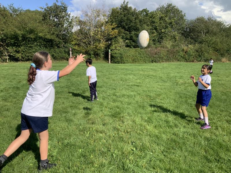Year 4 have been learning how to play rugby this week. We learnt how to hold the ball and how to pass it using a sling throw. We became more accurate and faster the more we practised!