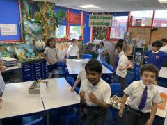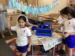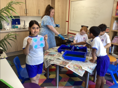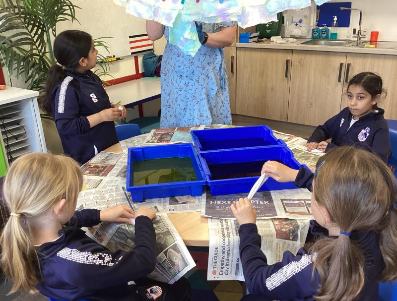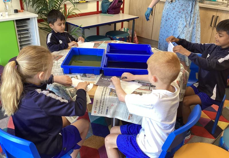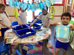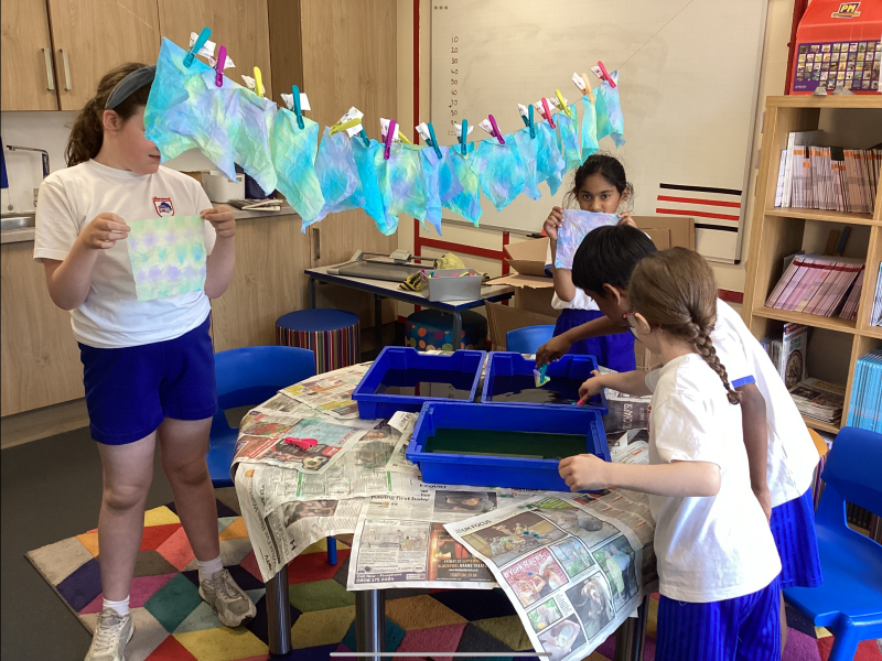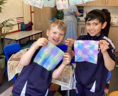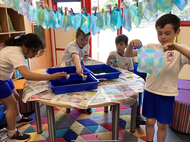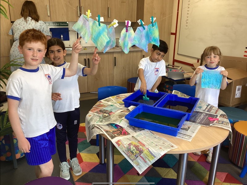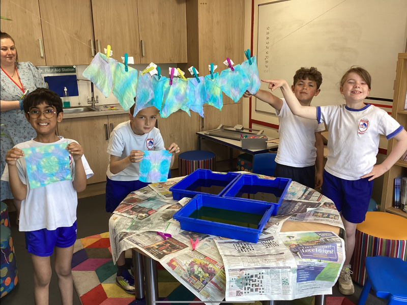 This week, the children in Year 3 have been tie dyeing their fabric as part of their new textiles unit of work. They will use these to create a final piece.