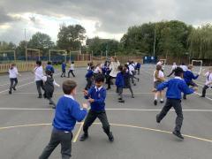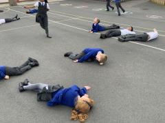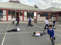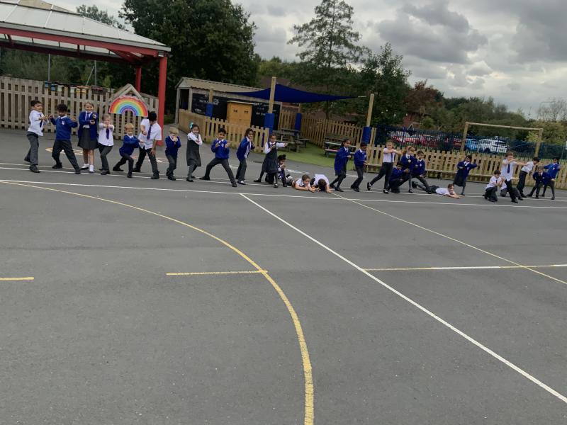 In History this half term, we are learning about significant events that have happened in Preston. The children have learnt about the Battle of Preston in 1715. The children have learnt about Jacobites who wanted James the 3rd to be King and King George's Army. The children understand that the Jacobites came from Scotland and that they met King George's Army in Preston where both armies fought a fierce battle. Today, the children renacted out the battle on the Junior playground.