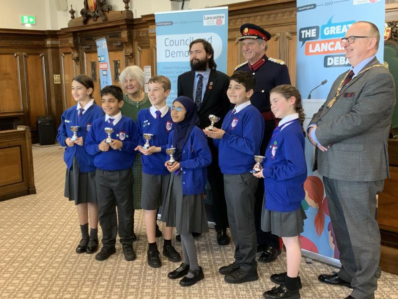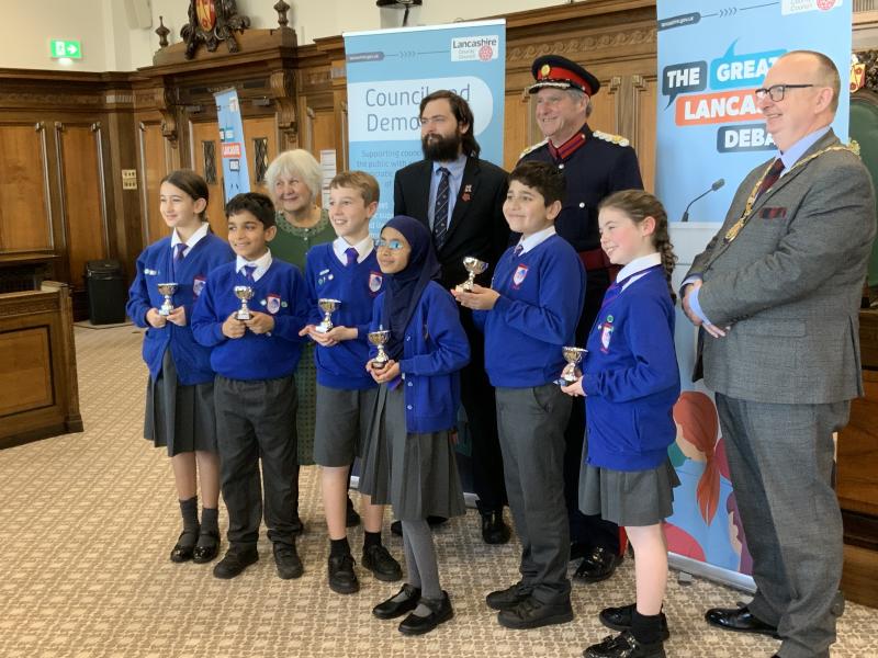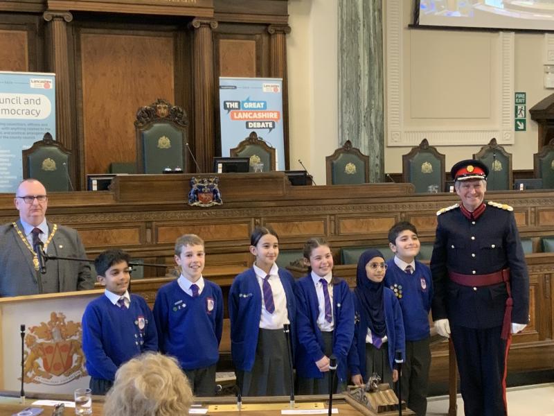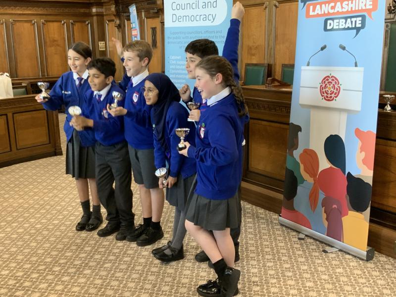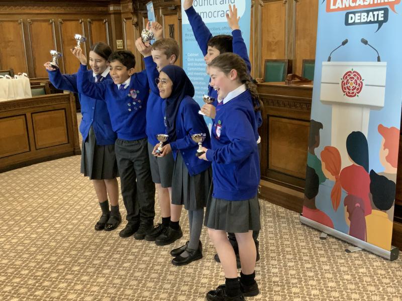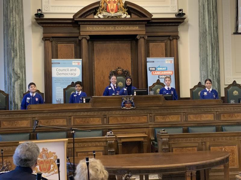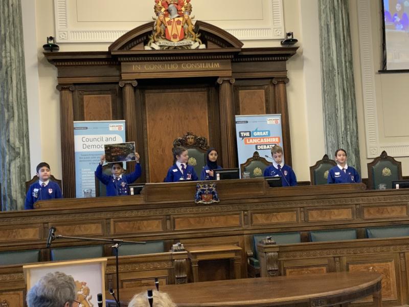 Our Y5 Sherwood Debate Team headed to County Hall in Preston on Tuesday, for the Great Lancashire Debate Final. They competed against other schools in Lancashire, presenting their ideas on how to improve their local area for their local community and for all in Lancashire. Choosing Mason's Wood as their focus, they gave a five minute presentation of their ideas in the Council Chambers, followed by questioning from the judges. They did brilliantly, with the judges saying their presentation was 'enthusiastic, creative and well-researched'. They came second place overall with Highly Commended, and Hafsah was awarded second place for 'Speaker of the Day'. Well done children - your were outstanding and have made us all very proud!