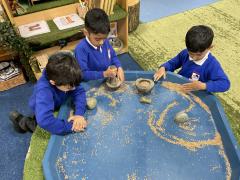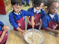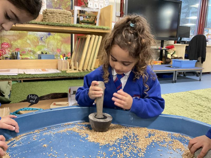 There has been a delicious smell in the EYFS unit this week as the children have been having lots of fun baking their very own bread - just like the Little Red Hen in our story! They have also been busy grinding wheat in the fine motor area, creating all sorts of breads and pastries at the playdough bakery and acting out the story in the 'Once Upon a Time' theatre!