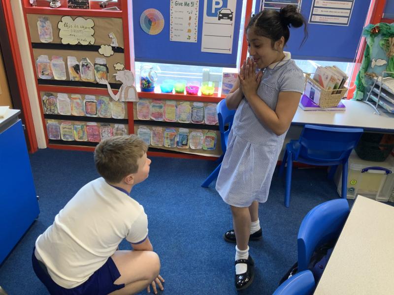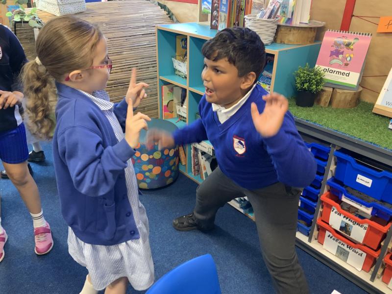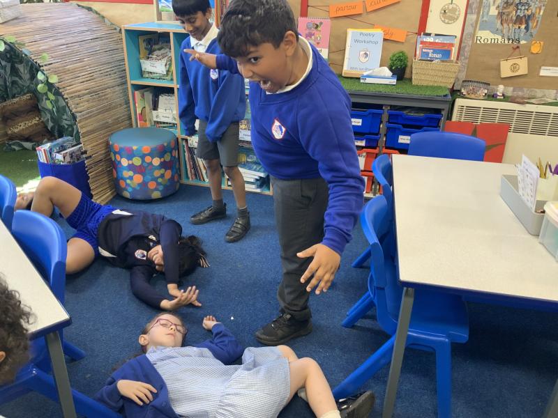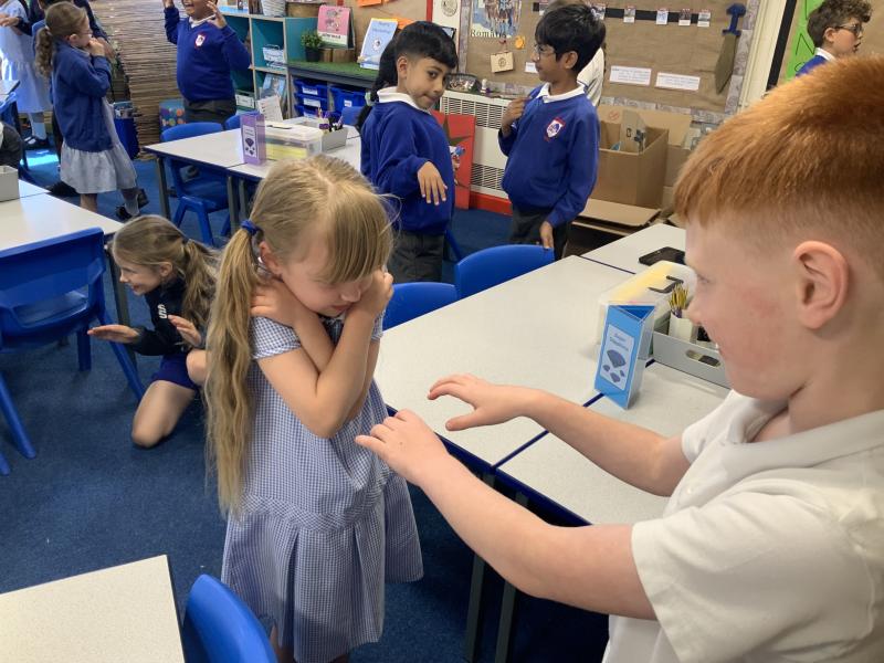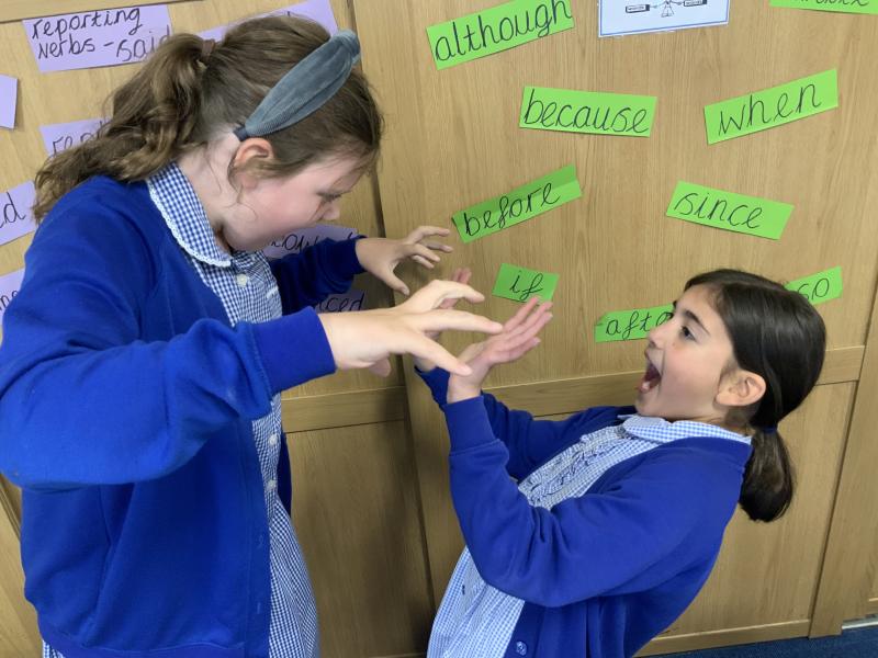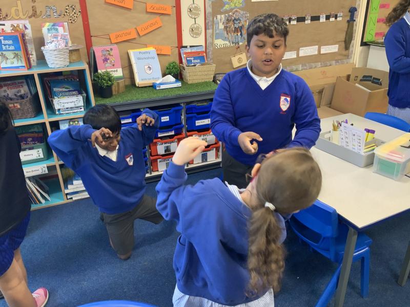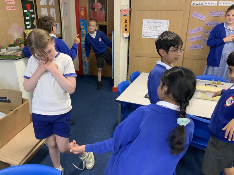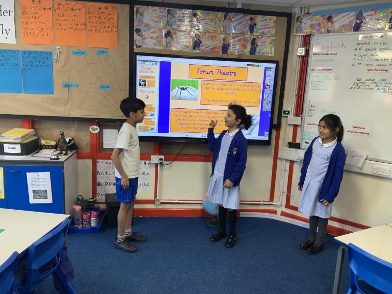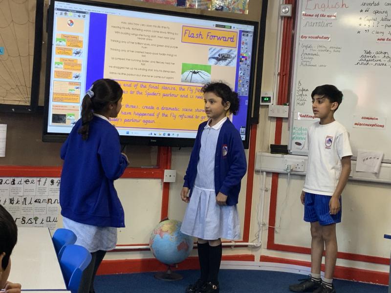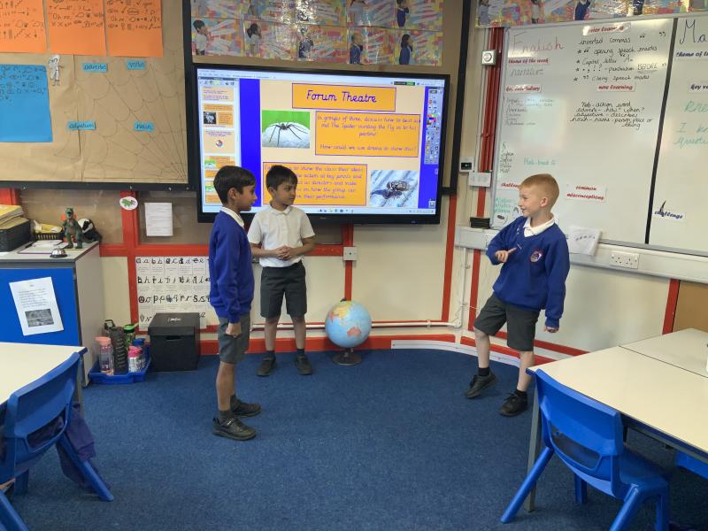Today, Year 3 explored the characters of 'The Spider And The Fly' by taking part in some drama activities. The children worked together to recreate scenes from the poem and explored the character's thoughts' and feelings.