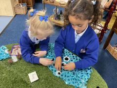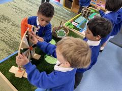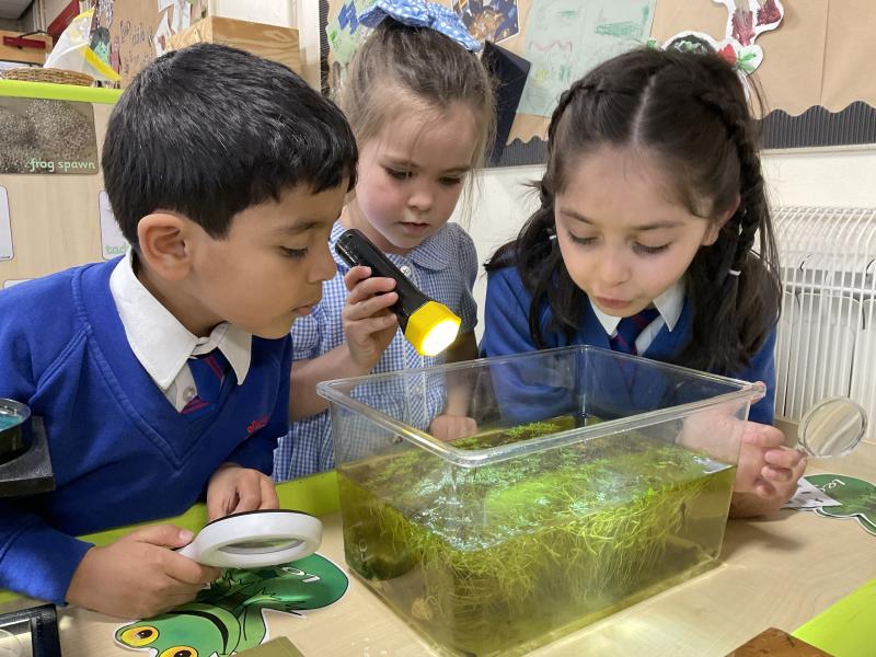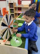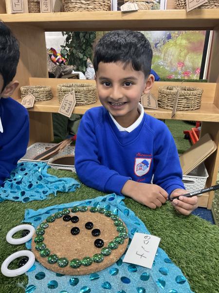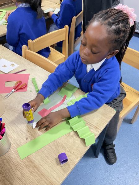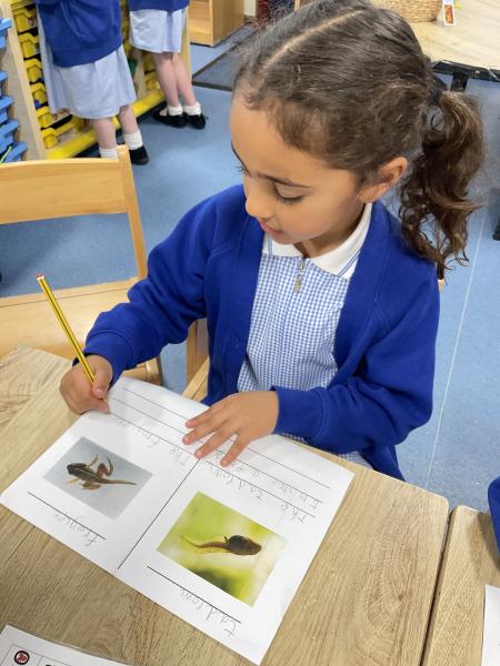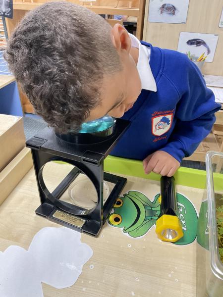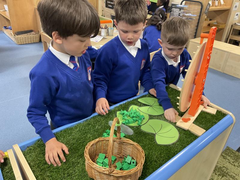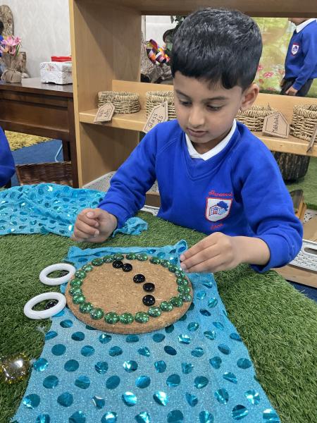 Before the Easter holidays, some children visited the school pond and collected some frog spawn. We were excited to return to school to discover that some tadpoles had hatched! We have enjoyed observing them closely in the classroom and have been busy learning about the lifecycle of a frog. We have read the story, 'The Teeny Weeny Tadpole' and have written our own non-fiction texts. Our new transient art provision has been very popular and the children have come up with some super creative ideas!