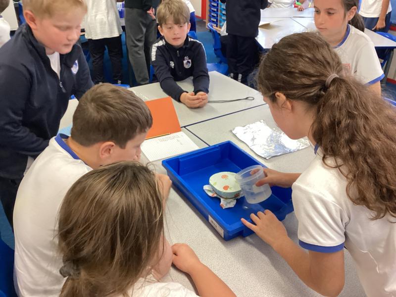 Today the children were tasked in designing the 'Ultimate' waterproof jacket. They explore the materials relating to their properties and designed and experiment using fair testing to find the best material.