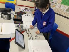 In maths this week, we have been learning all about money! We started by exploring the different coins and identifying which ones we recognised. We discussed the key vocabulary and the value of each coin, and we even ordered them from smallest to greatest! Our task on Seesaw was to exchange a £1 coin for coins of the same value (using only 5p, 10p, 20p and 50p coins), and we uploaded our practical work using the camera.