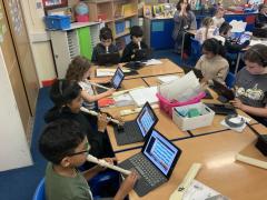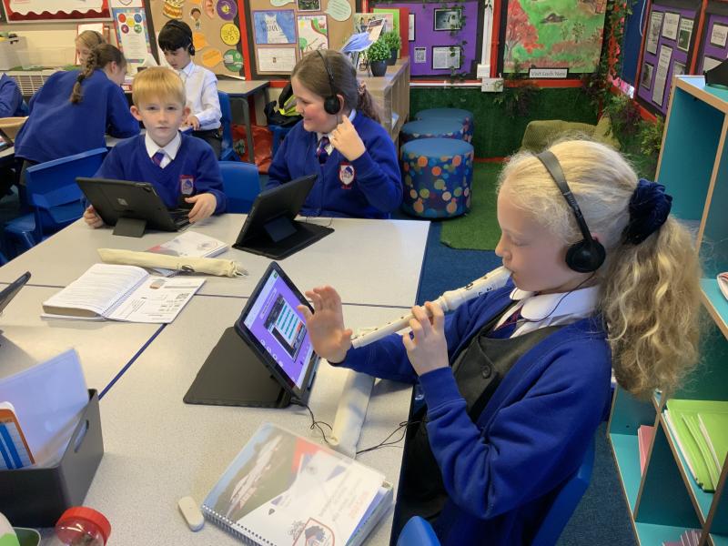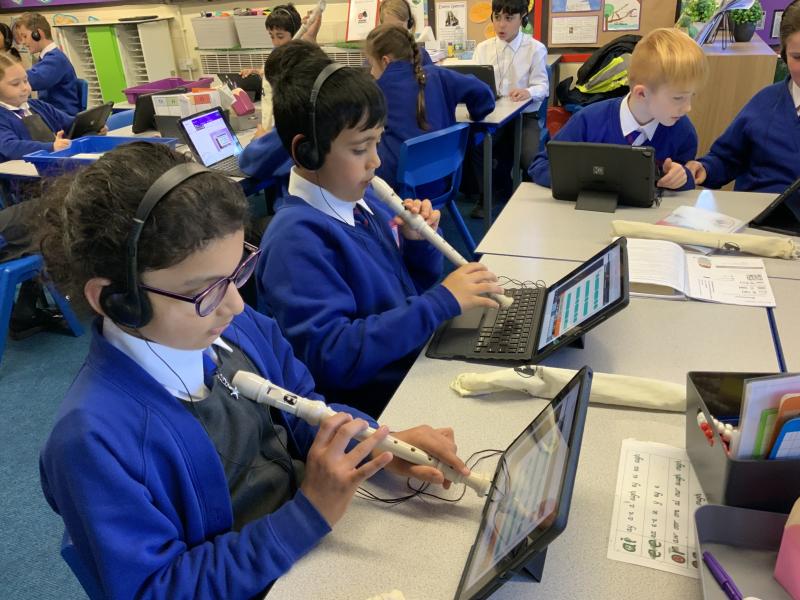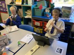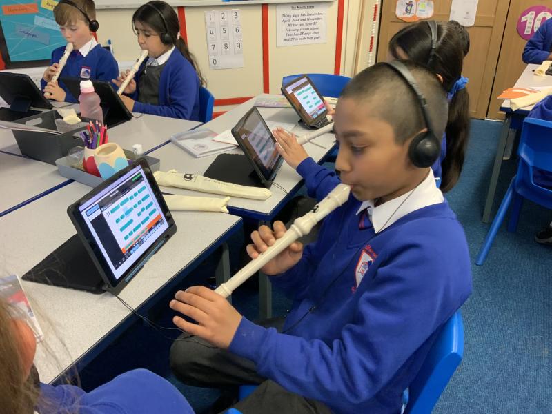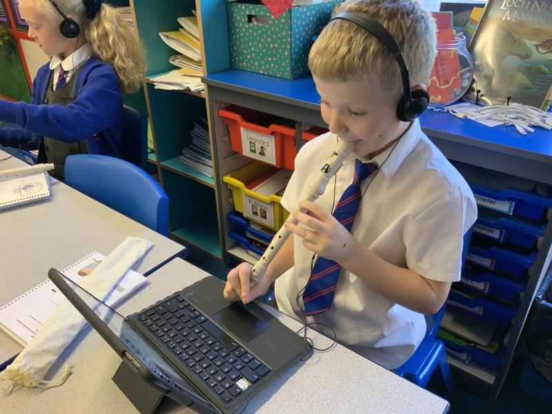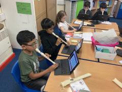 Year 4 have written their own musical compositions for their recorders. They used Charanga to explore creating a section of music using the notes A and G, to include in they piece Mamma Mia. They then shared their compositions with the class.