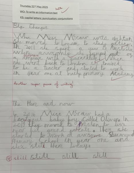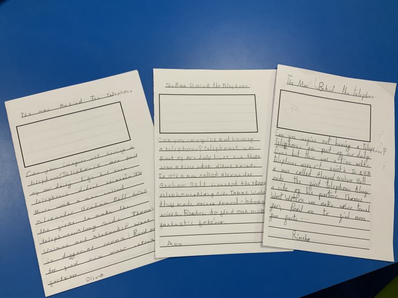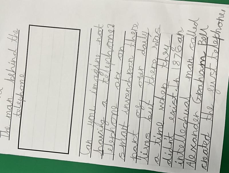 Year One have been incredibly busy in writing week! They have written information booklets about Alexander Graham Bell and also about their teachers! We are working really hard on our presentation and cursive handwriting.