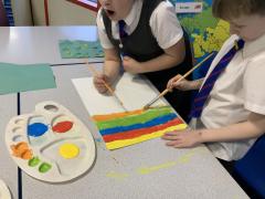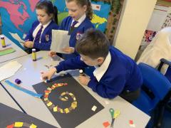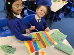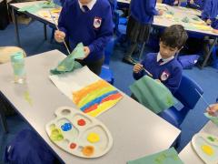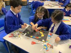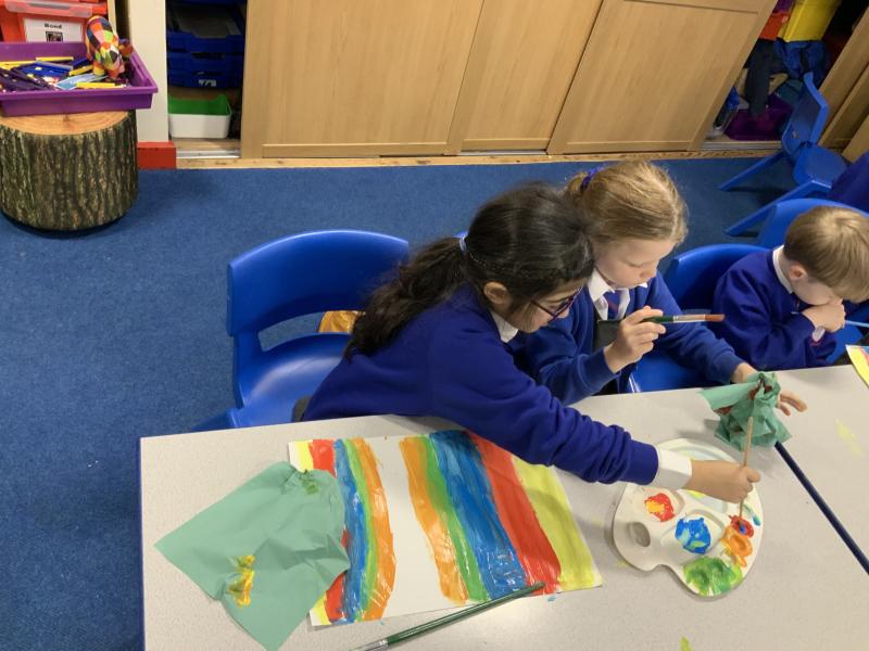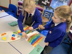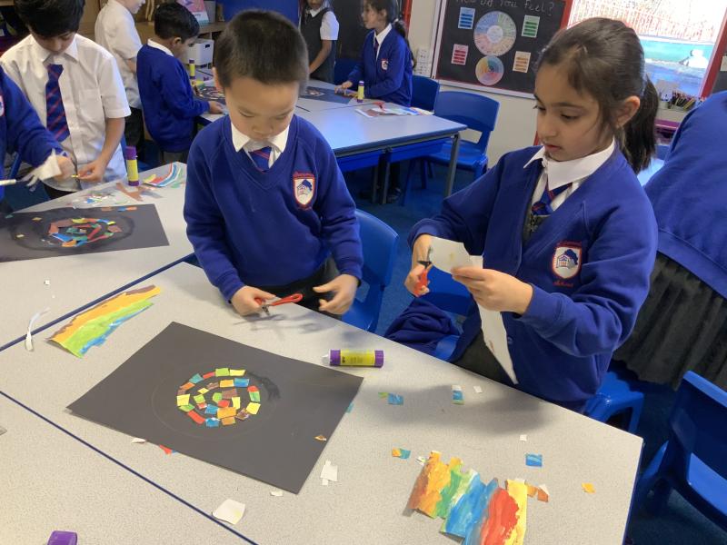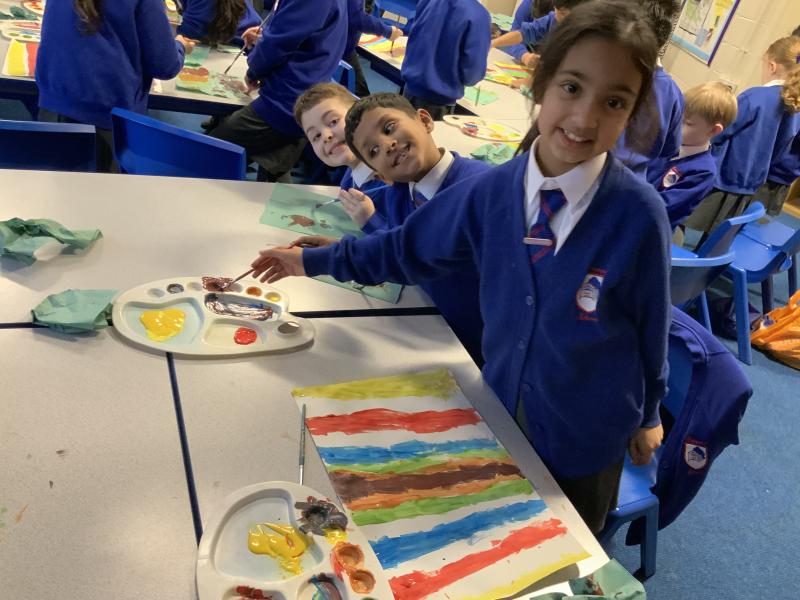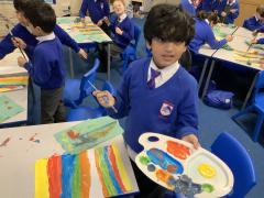 Year 2 are learning about the French 'Fauve' artist, Henri Matisse. Matisse began as a painter before becoming famous for his vibrant large-scale collages in later life. The children have been learning about his style of 'paper cut-outs' that have inspired story illiustrators, such as Eric Carle in The Very Hungry Caterpillar. The children began by using primary colours to create their own paint palette of secondary colours to cut out and later use in their response to 'The Snail' by Matisse. Brilliant partner work Year 2 and discussion about their design together!