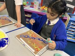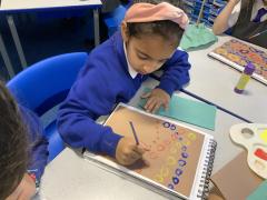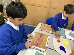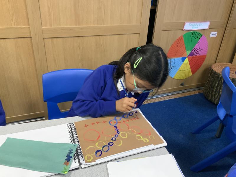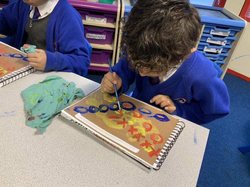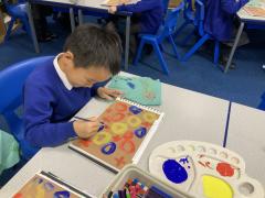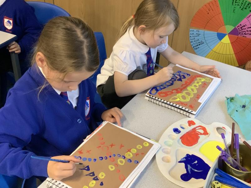 Year 2 learned how to control their paint brush to paint shapes accurately in primary colours. They listened to a story and made responses using the visual elements of shape and pattern. Excellent painting skills Year 2!
