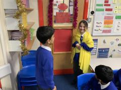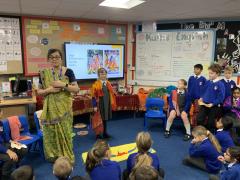 Year 3 have had a fantastic workshop this morning with our visitor, learning about the Hindu story of Rama and Sita and how it demonstrates family values. They retold the story through drama and showed off their acting skills!