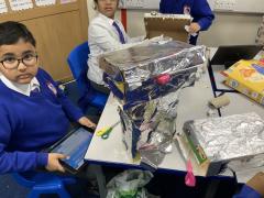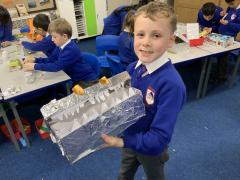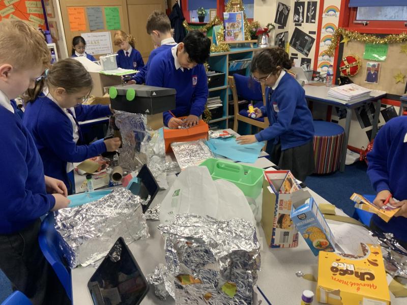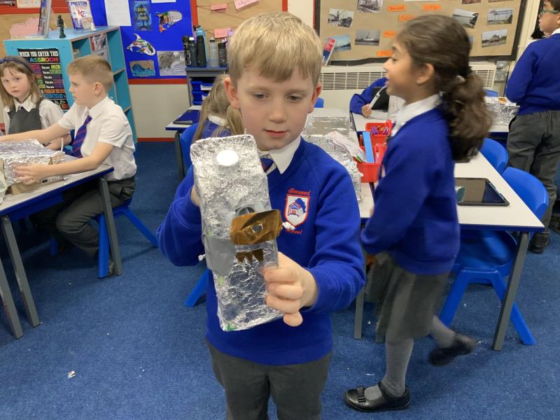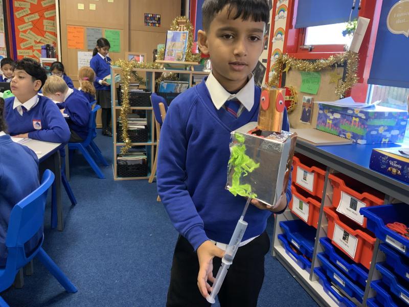 In DT this half term, the children have been learning about pneumatic systems and what they are. The children then designed and made their own toy, based on their reading of the Iron Man, which included a pnuematic system to make something of their design move. The children carefully and creatively made their project and have all been successful in including a moving part into their design. Thanks to all parents and careers for gathering and collecting in the materials for the children to use.