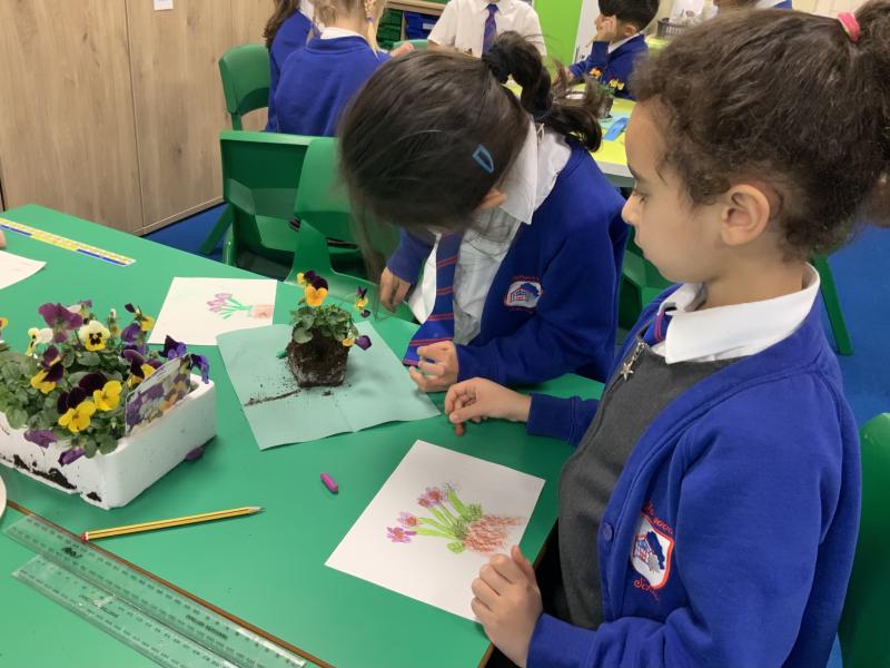 Year One are enjoying their new Science topic on Plants. The children are identifying evergreen and deciduous plants around the school grounds and explaining why they are by observing leaves and seasonal change. In class, we have studied real plants and drawn them from observation, naming the parts of the plant using scientific vocabulary.